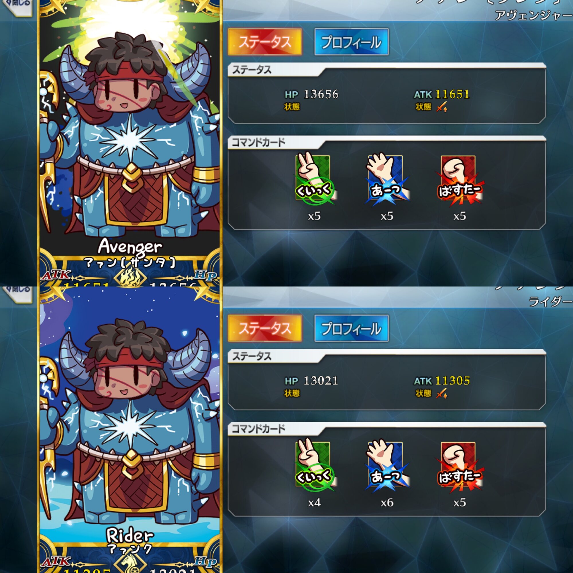 カルナさんも恒常とはいえ星5だもんね……FGOACのサバにもしっかりテキストあるんだね