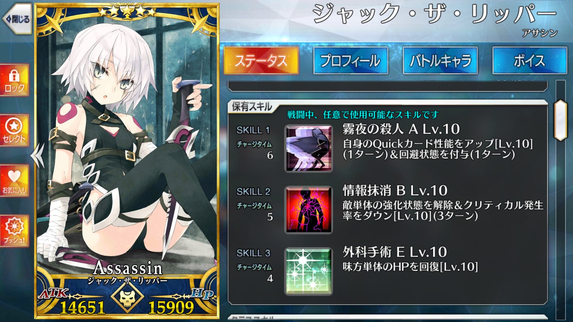 スキルも1ターン回避+Q性能アップ、単体への強化解除&クリティカルダウン、クールタイムが短く自他に投げれる回復スキルと優秀なものが揃っています