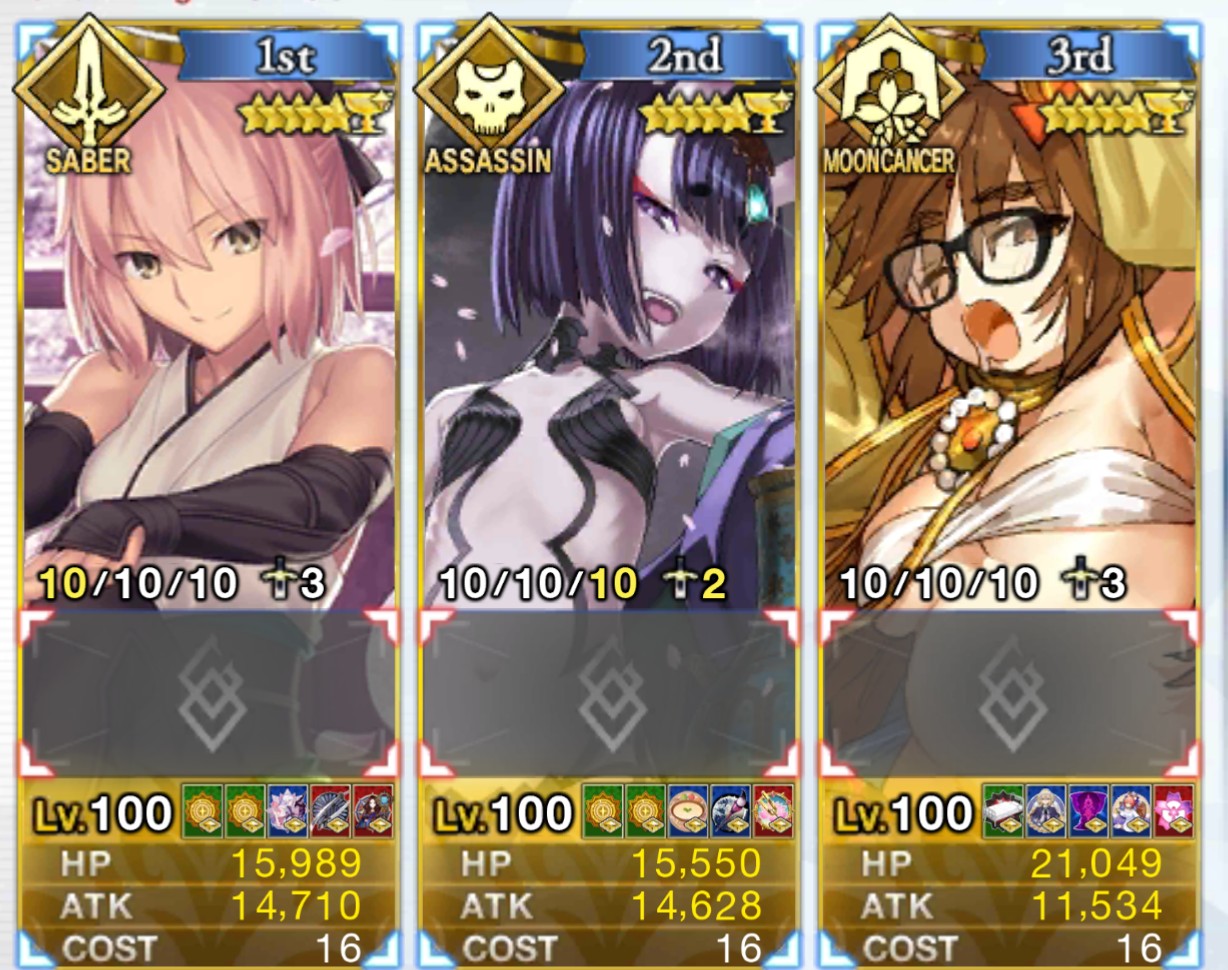 上はともかく下なら宝具ぶっぱで終わるから、虚数持たせた前衛だけ編成するのが一番手っ取り早いんだよね。>>875