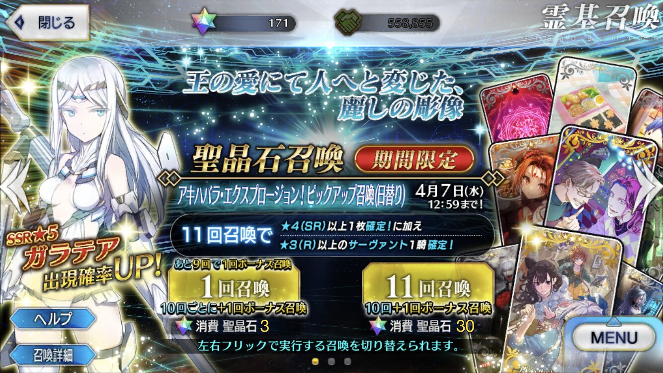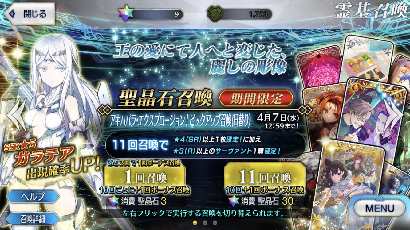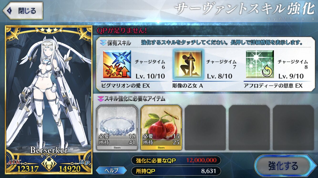 そうした方が今日はより順調に物事が運びそうですよ。ガラテアちゃんは再臨のセリフ見るに造形活動において金を惜しまない(惜しむ発想がない)タイプと見た。
