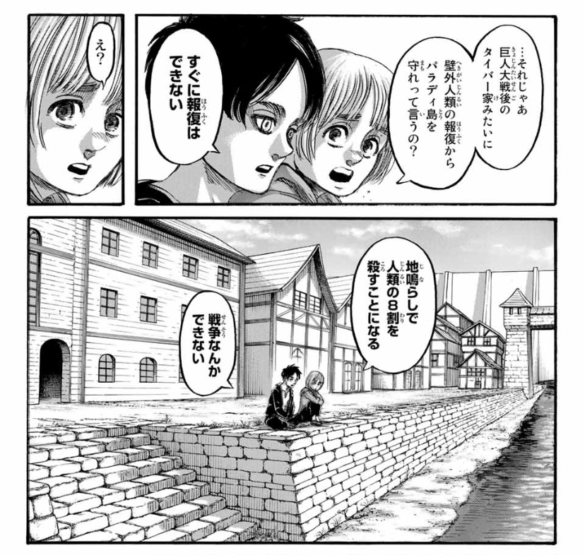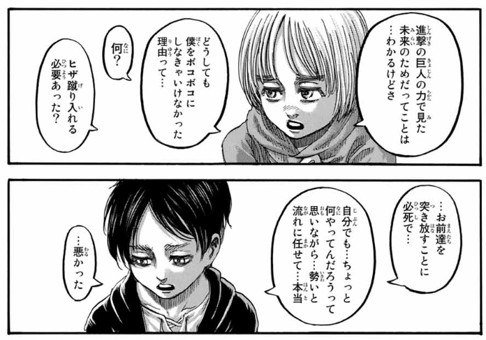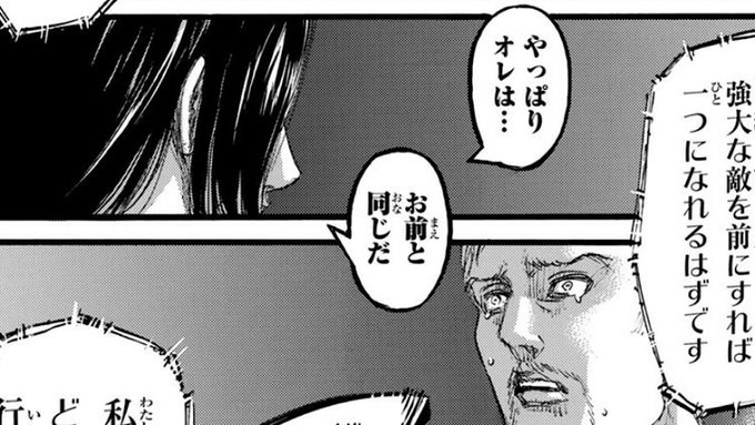 これってテレビで見せた時のイメージでは、エレンとアルミンの対話がラストに配置されていたってことかな?>>962
