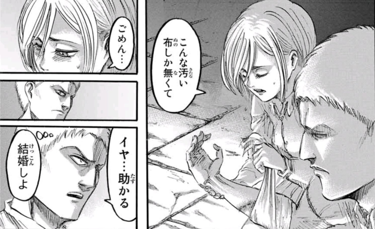 ぶっ倒れるエレミカ勢、お前気持ち悪いなぁもう!と言いながらなんやかんや祝福するライナーだいすき勢、たくましく生きる兵長etc.)マリーダさんが撃たれた後導く為に出てこなかったら閃光のリディになっていた