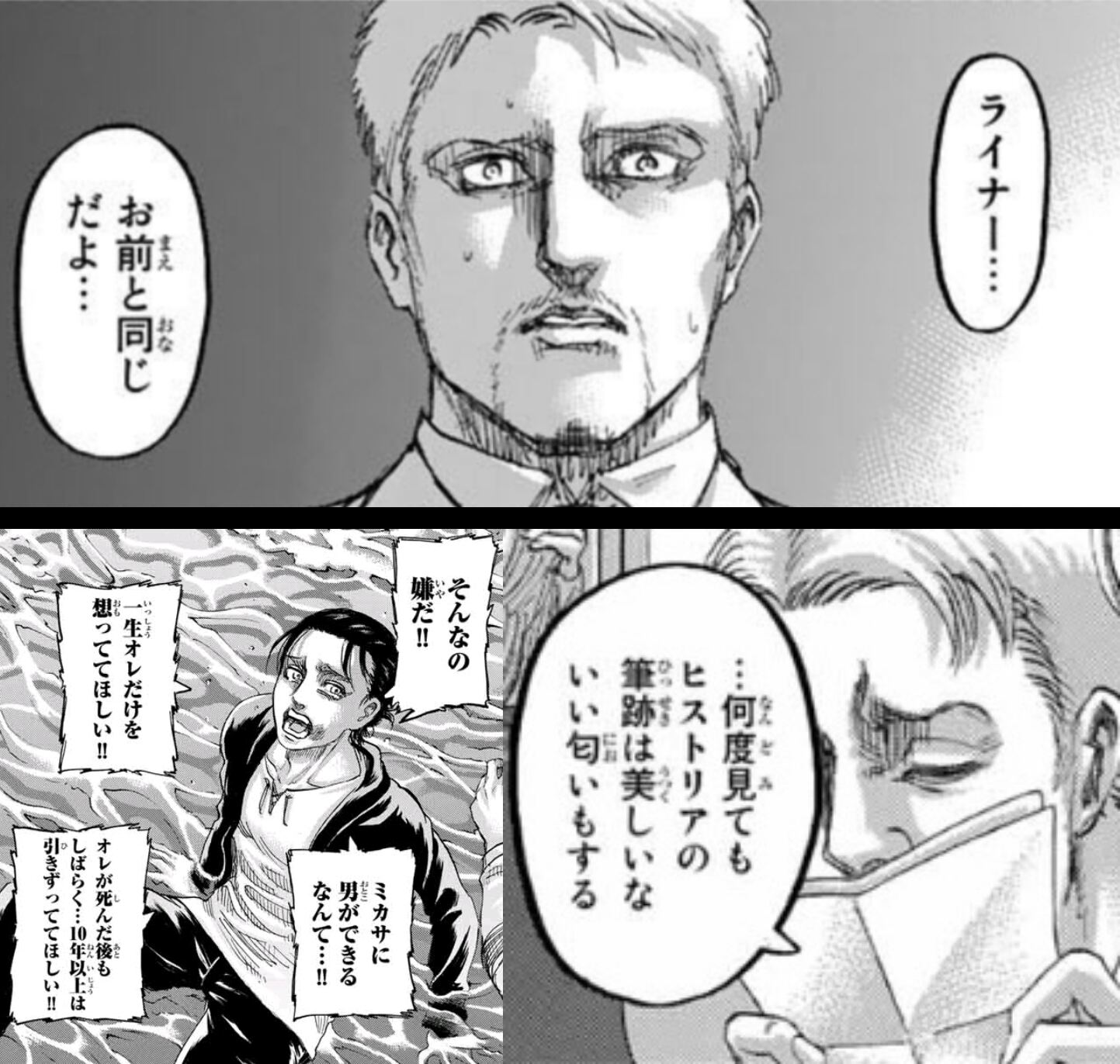 アニもライナーも今度こそ本当に再会できたし、ミュラー長官達はギリギリのところで踏み止まってくれたし、もう何も言う事がない