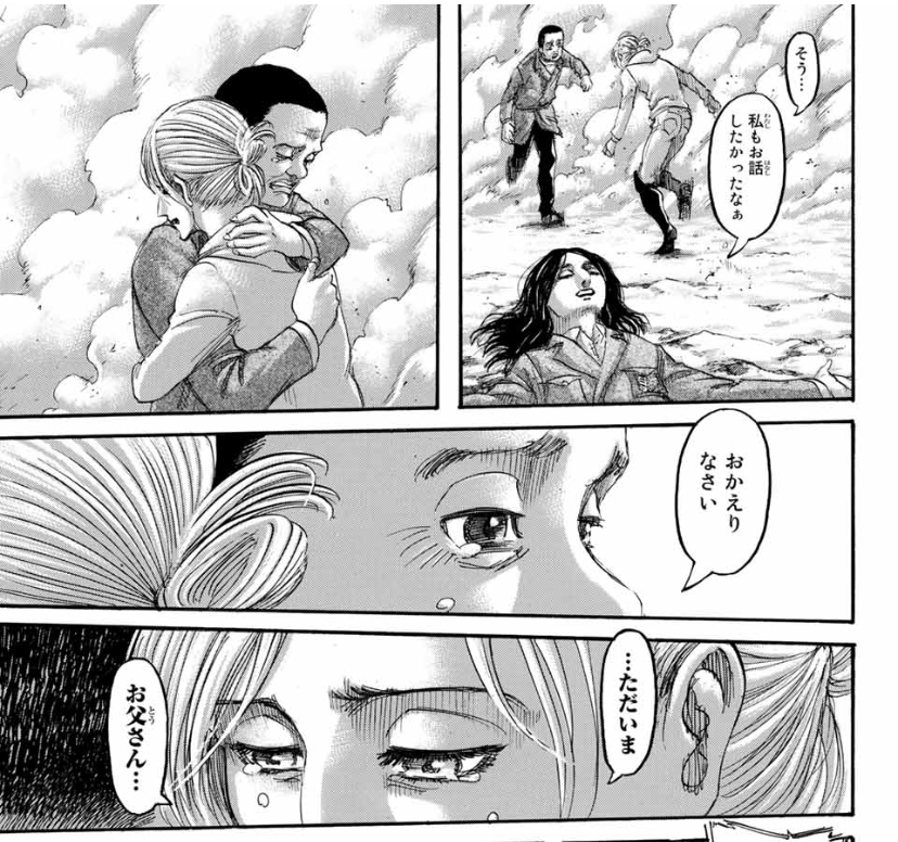 普段からちゃんとこういうの言えてりゃ絶対評価変わるだろこの人…進撃の最後、鳥がマフラー持っていくものだと思って読んでたから驚いたわ