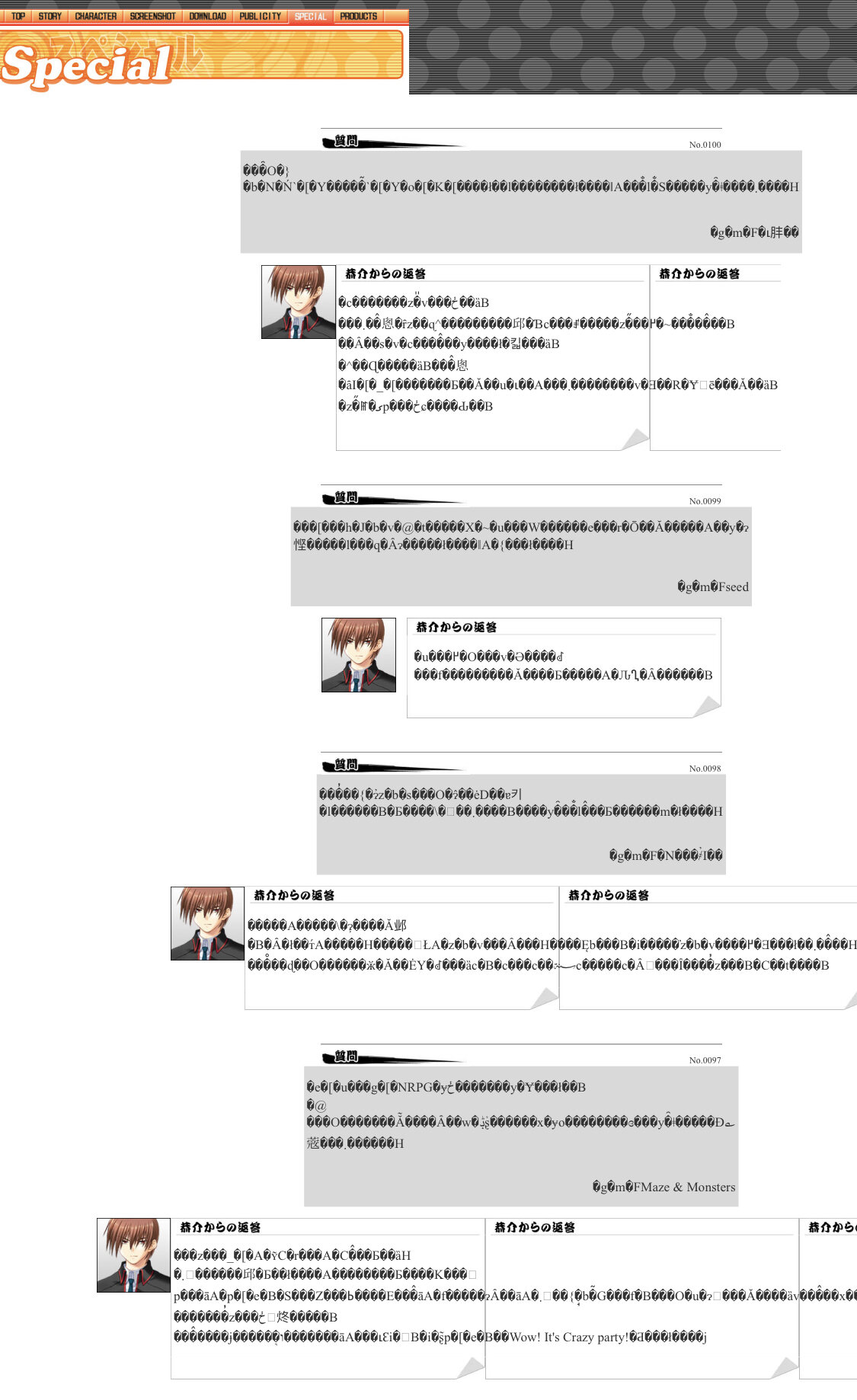久しぶりに見に行った公式サイトのネタページが文字化けしてる時