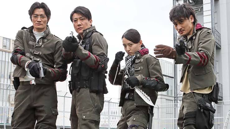 秘密犯罪組織の幹部の姿か、これが…?真っ昼間にこんな目立つ格好で雁首揃えて、しかも都心のど真ん中…