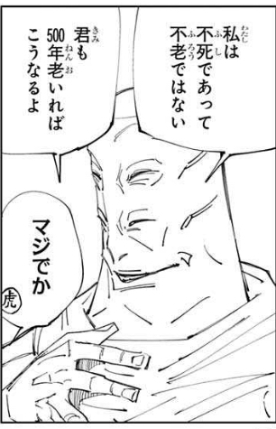 ただでさえ大目標が遠大なのに、復活した2000年代人類同士で殺し合い展開入れるのはどうかと思った感じ。というか天元様にも干渉できるってマジで夏油傑五条悟とタメ張れる最強だったんだな……