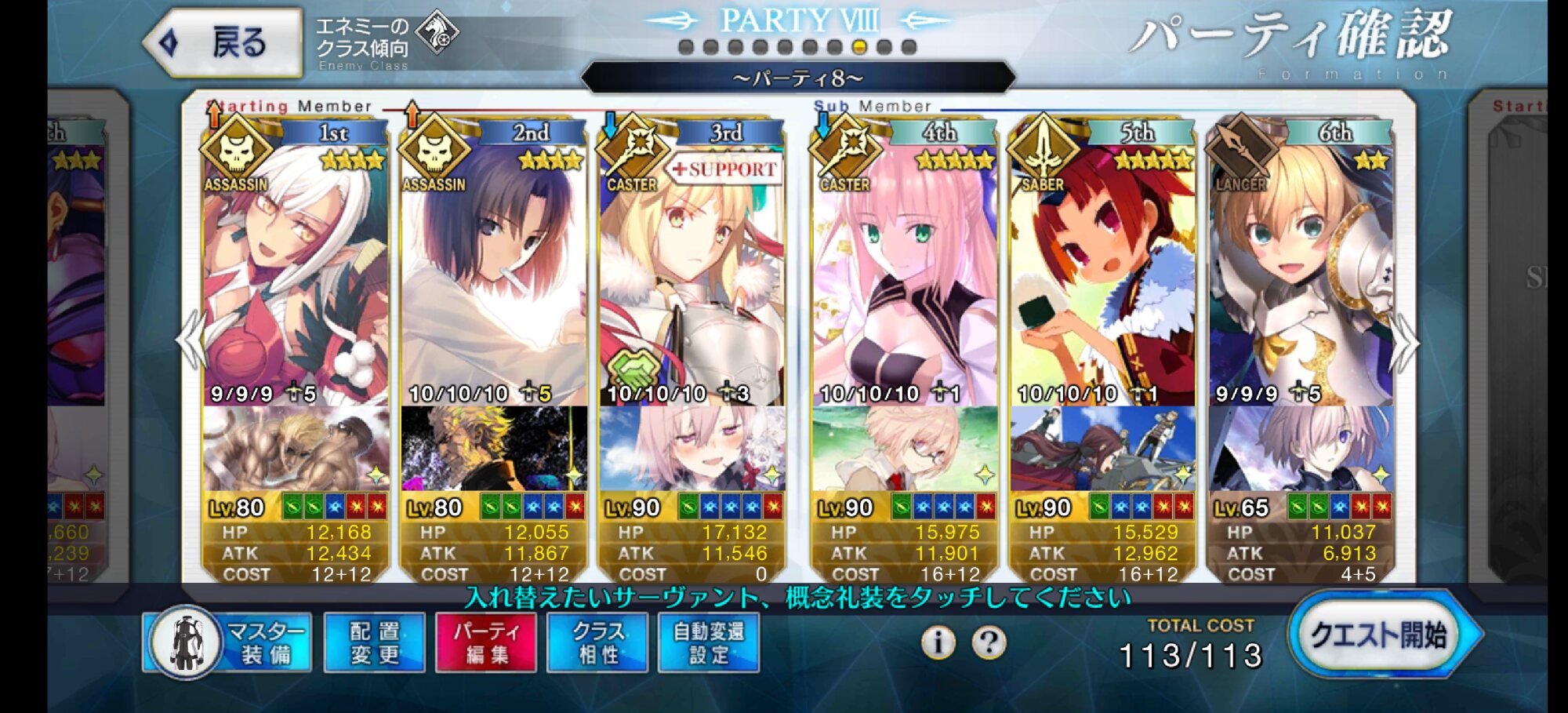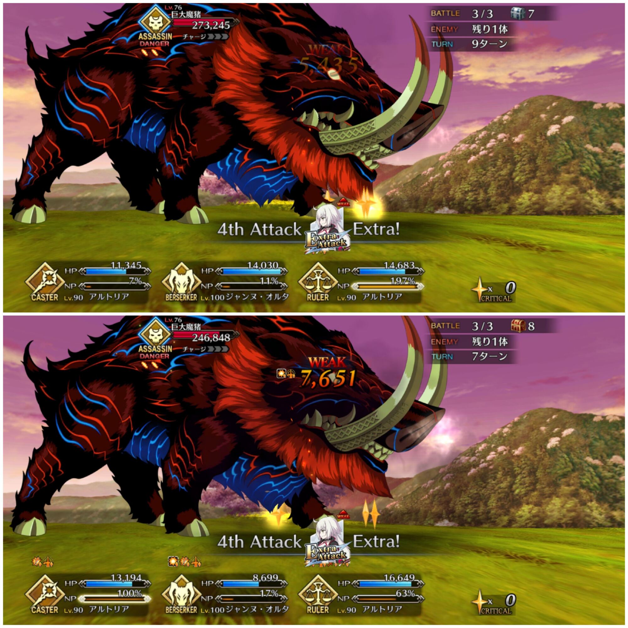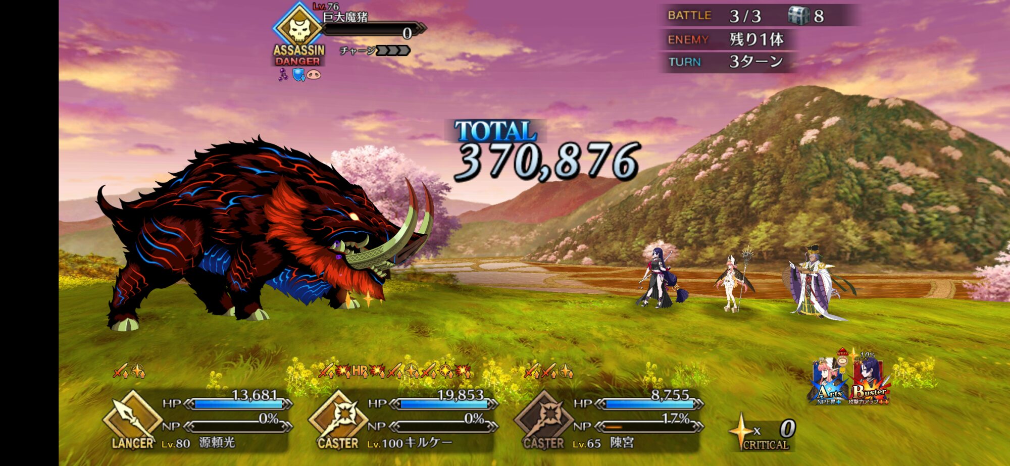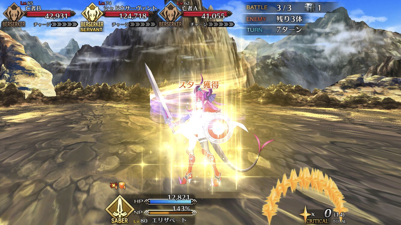 アタッカーにしようとした一ちゃんがそうそうに落ちてキャストリア、孔明、玉藻の三人で永遠宝具回してた