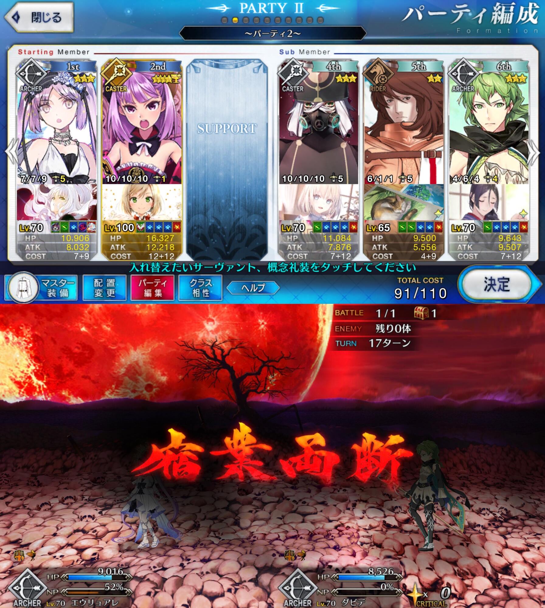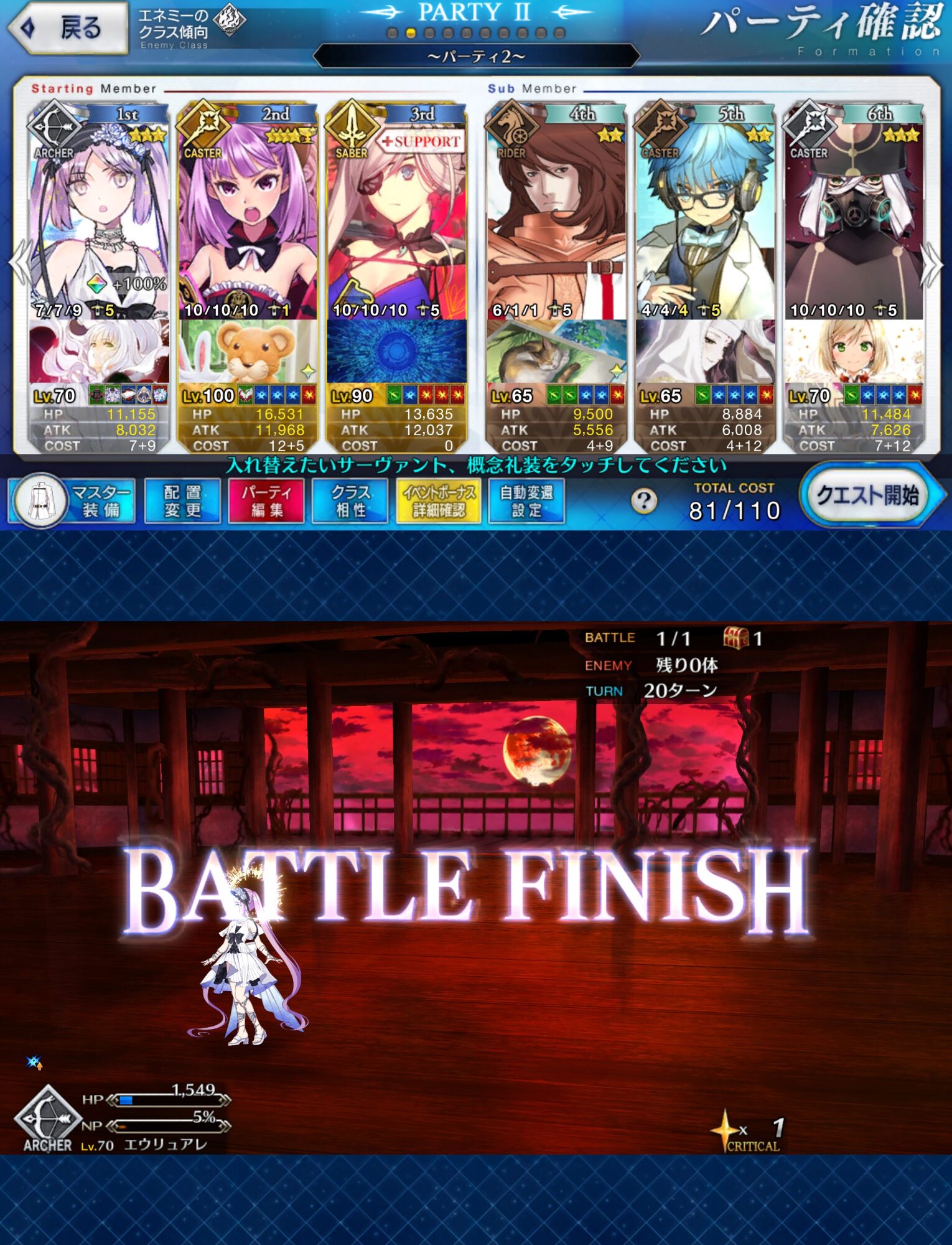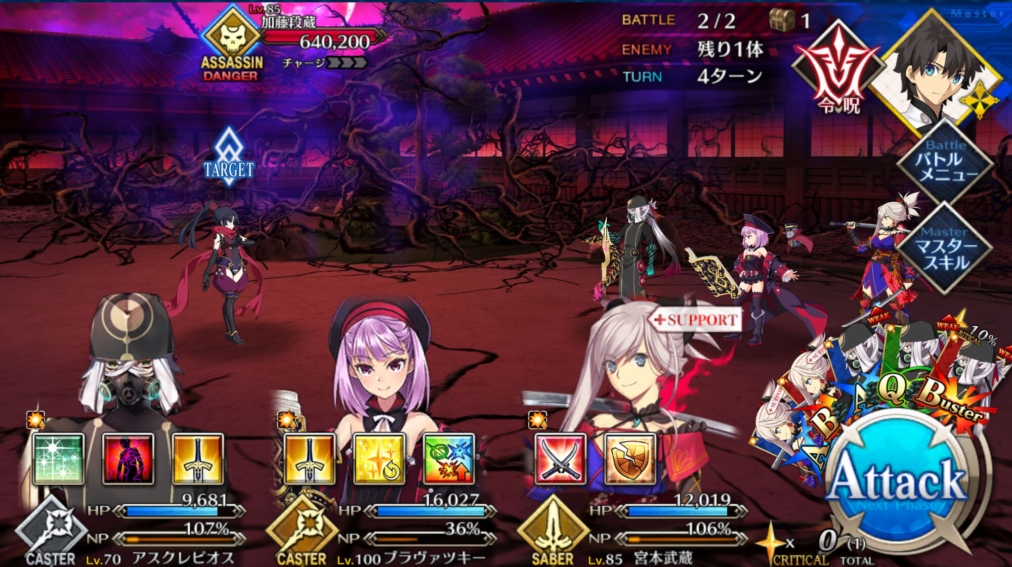 存分に狂い遊ばせ火力自体は据え置きだけど集中と星出しによって初手カードが無い限りクリティカルがほぼ発生するから、火力とNPの底上げが今回の目的かな