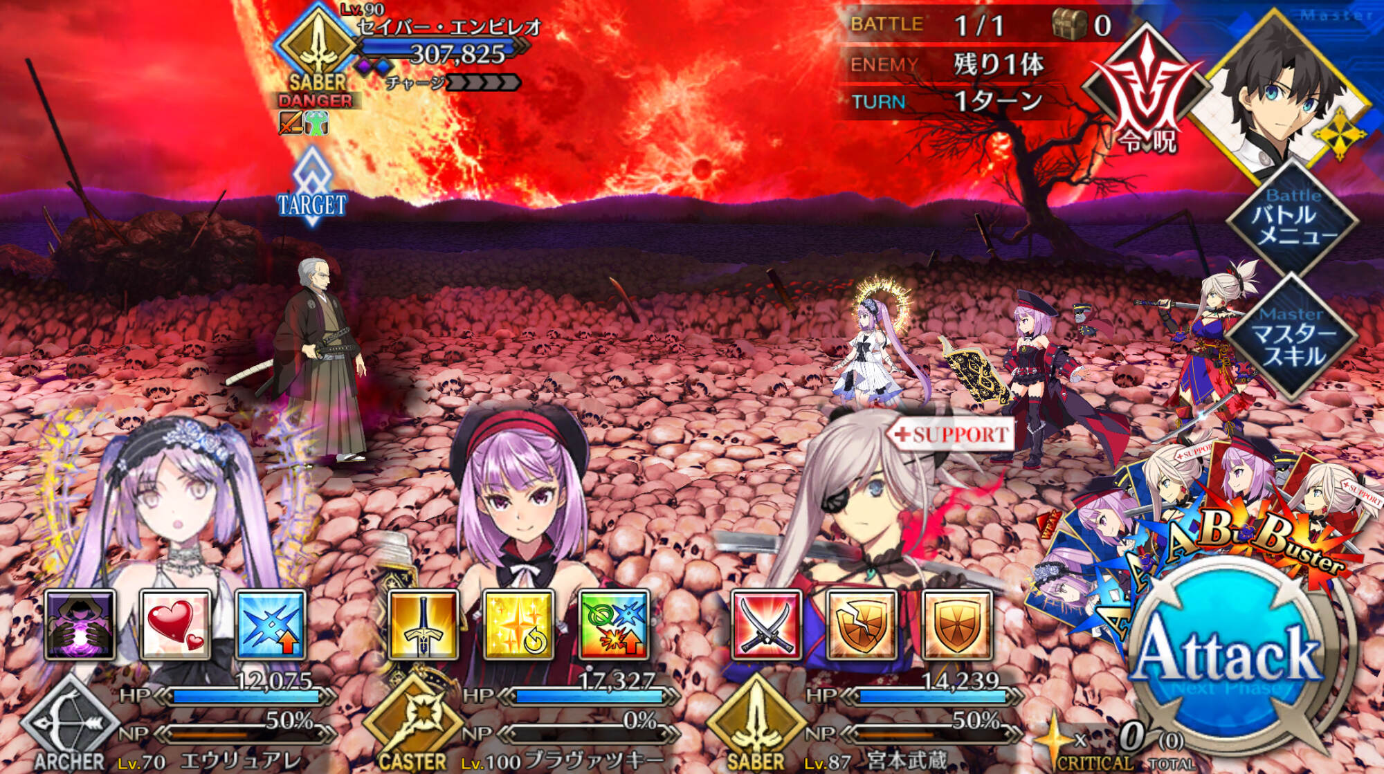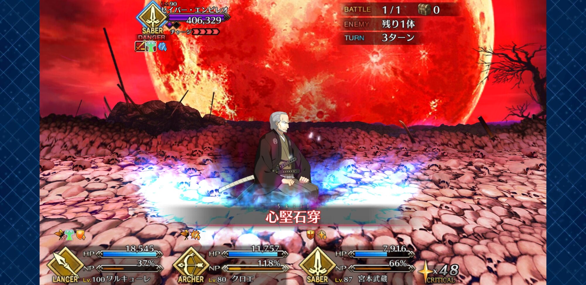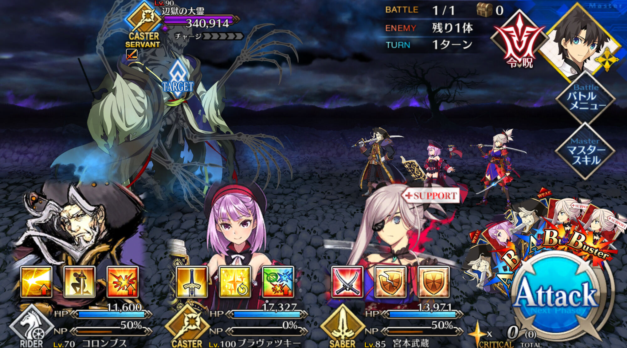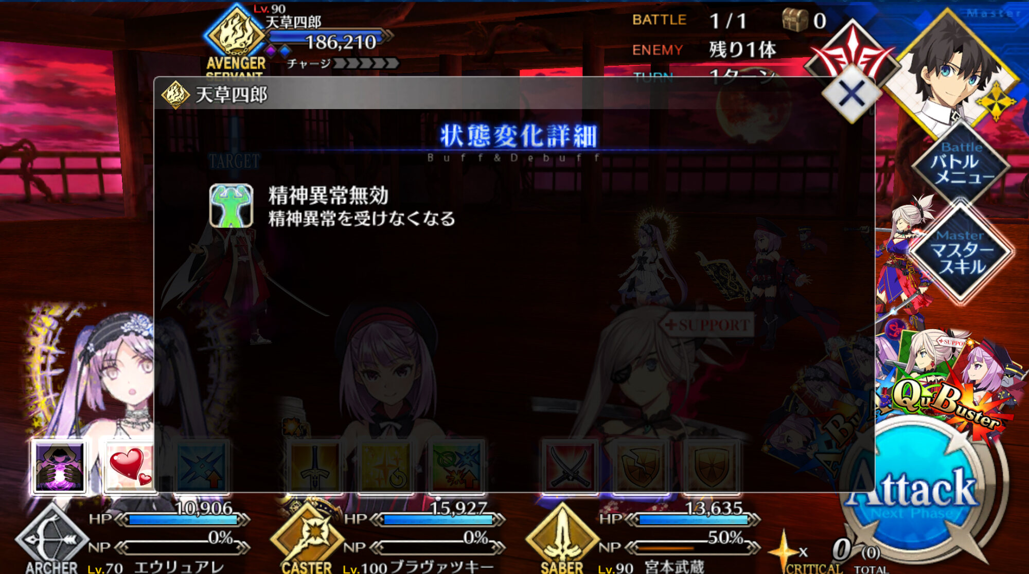 存分に狂い遊ばせ火力自体は据え置きだけど集中と星出しによって初手カードが無い限りクリティカルがほぼ発生するから、火力とNPの底上げが今回の目的かな