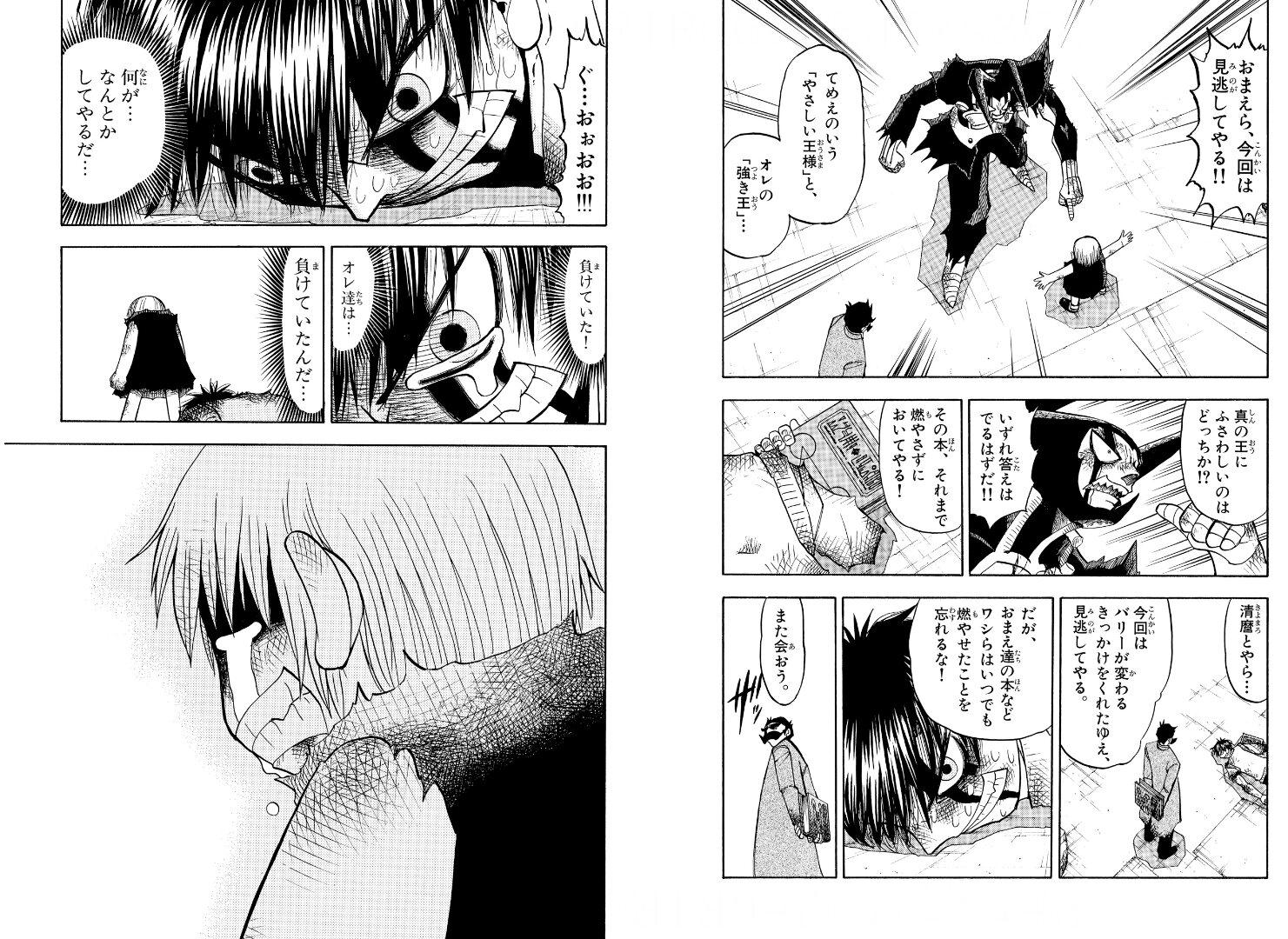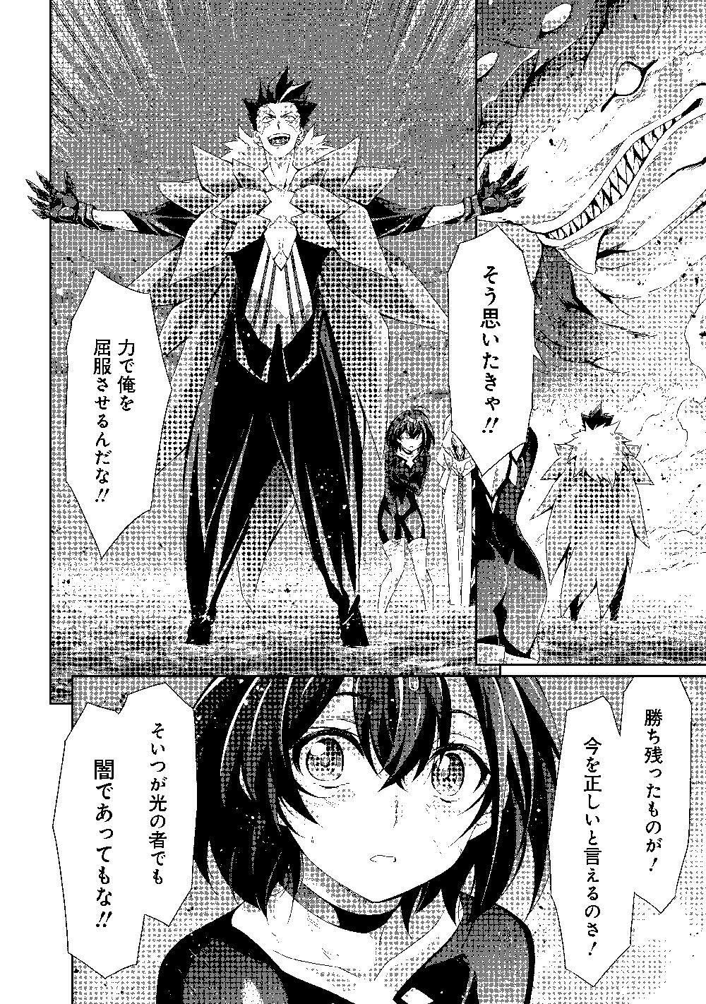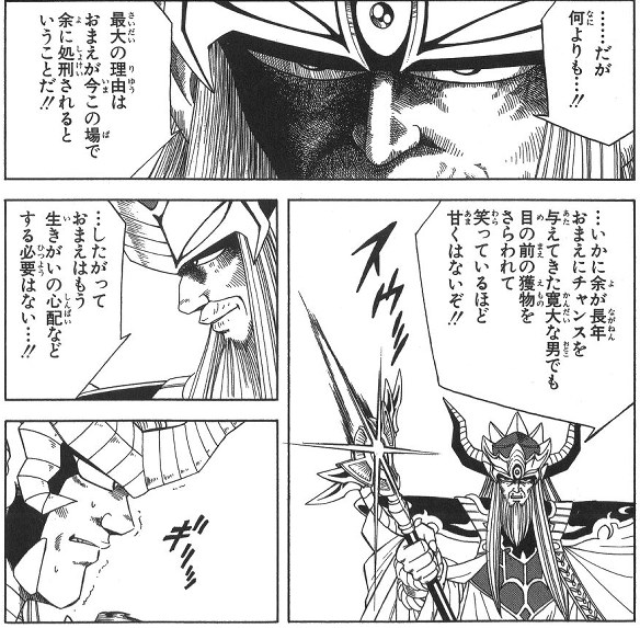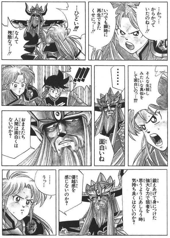 「You will not forget this devil's power. You are not worthy as my opponent!」
