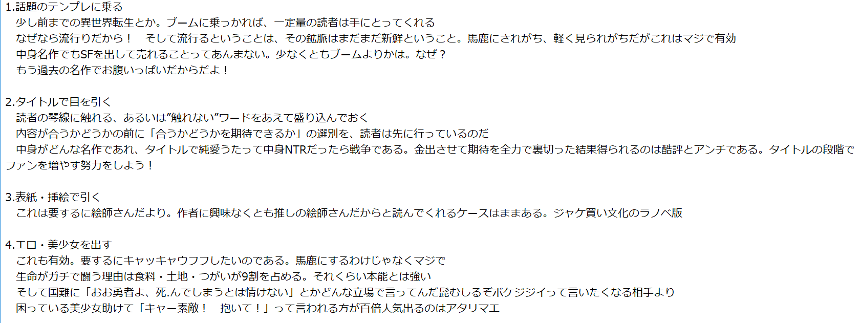 原始的な理由のほうが共感されるっていってたしな>>859