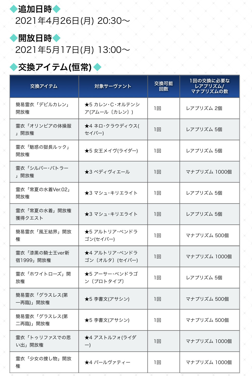 後で対象鯖を引いた場合でもチケットで霊衣解放はできるから持っていて損ではないよ。QPも素材も消費しないで霊衣が貰えるから楽だよ。サポート礼装の編成難しくないです?