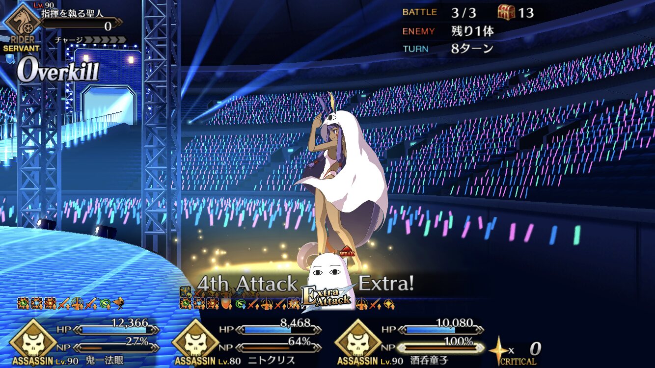 えっちゃん、アーラシュ、スカディ、キャストリアで無理やりえっちゃんで2連射して遊んでるわ