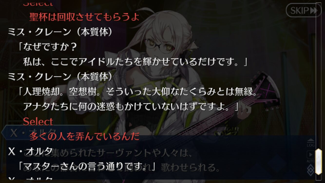 シナリオ fgoのシナリオとして何度も見たような内容だったのは新鮮味に欠けた。それこそ秋葉原から連続してるし。あとコラボって言うならロマンとロストルーム関連中心でやった方が良かったと思う。