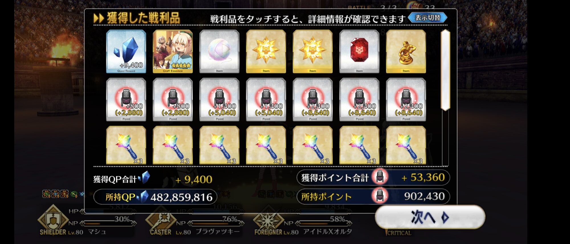 イベントのストーリー自体は綺麗にまとまってたし、今回明かされなかった部分は今後ミスクレーンの幕間で分かるかも?ポイント稼いでなんとか3種とも50万いけたけど…月曜日まで100万いけるかな?