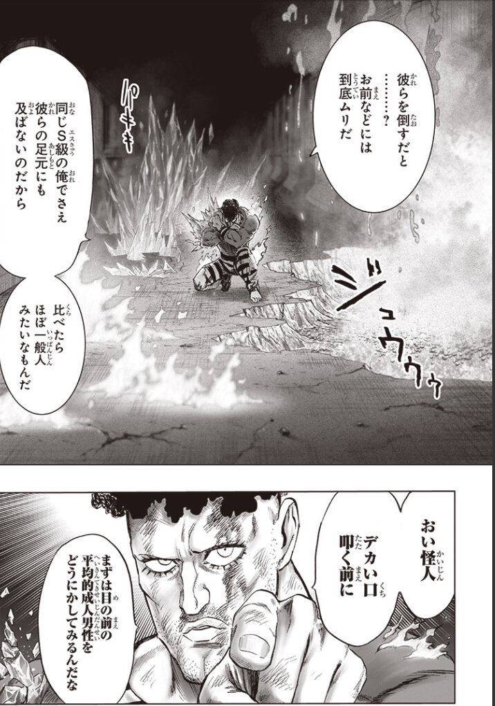 普通ならお前のような平均一般男性がいるかってシーンだがサイタマのせいで説得力がヤバいシーン>>96