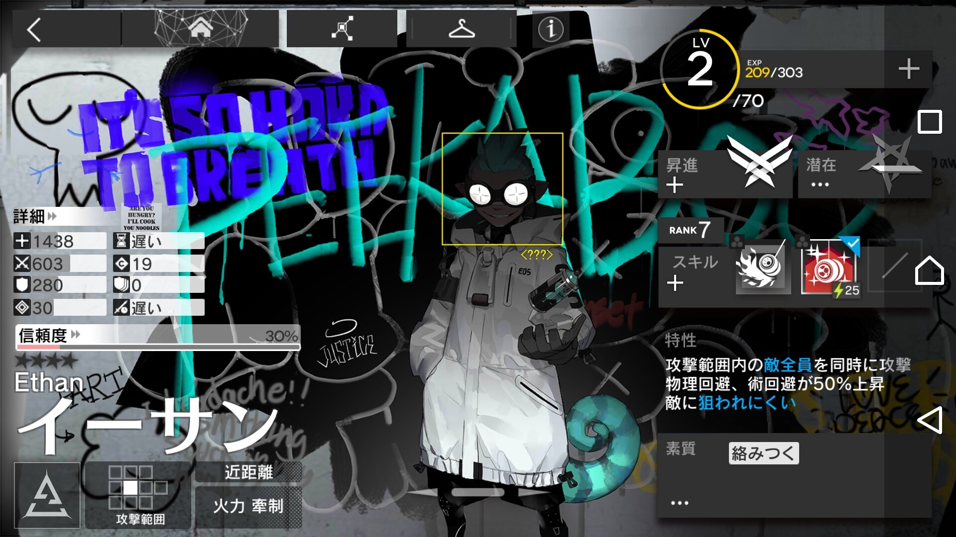 しかし、とあるオペレーターが称して曰く、彼女は最強の剣士である。奇襲してきた精鋭部隊を単騎で撃破し、騎士殺しの暗殺者すら交戦を避ける。一太刀で昼夜を分かつとすら言わしめる剣術だという。その心中は決して穏やかでは無いものだが……
