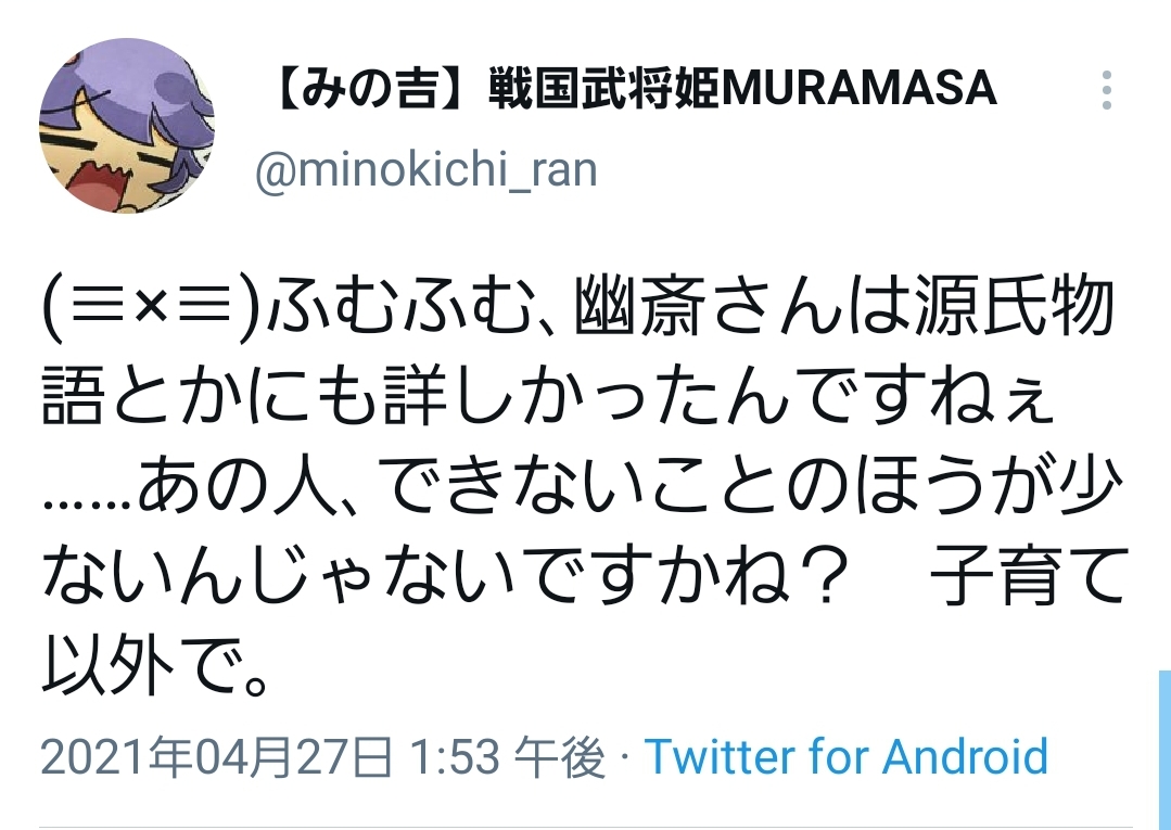 一応御役目が他の勇者達と違って対人テロ鎮圧(と言うかサツ人)なので重い過去を持ってるらしいが、それはそれとして弥勒家特有のポンコツムーブと友奈族の恋人枠特有の重過ぎるガチレズムーブが面白すぎる人。