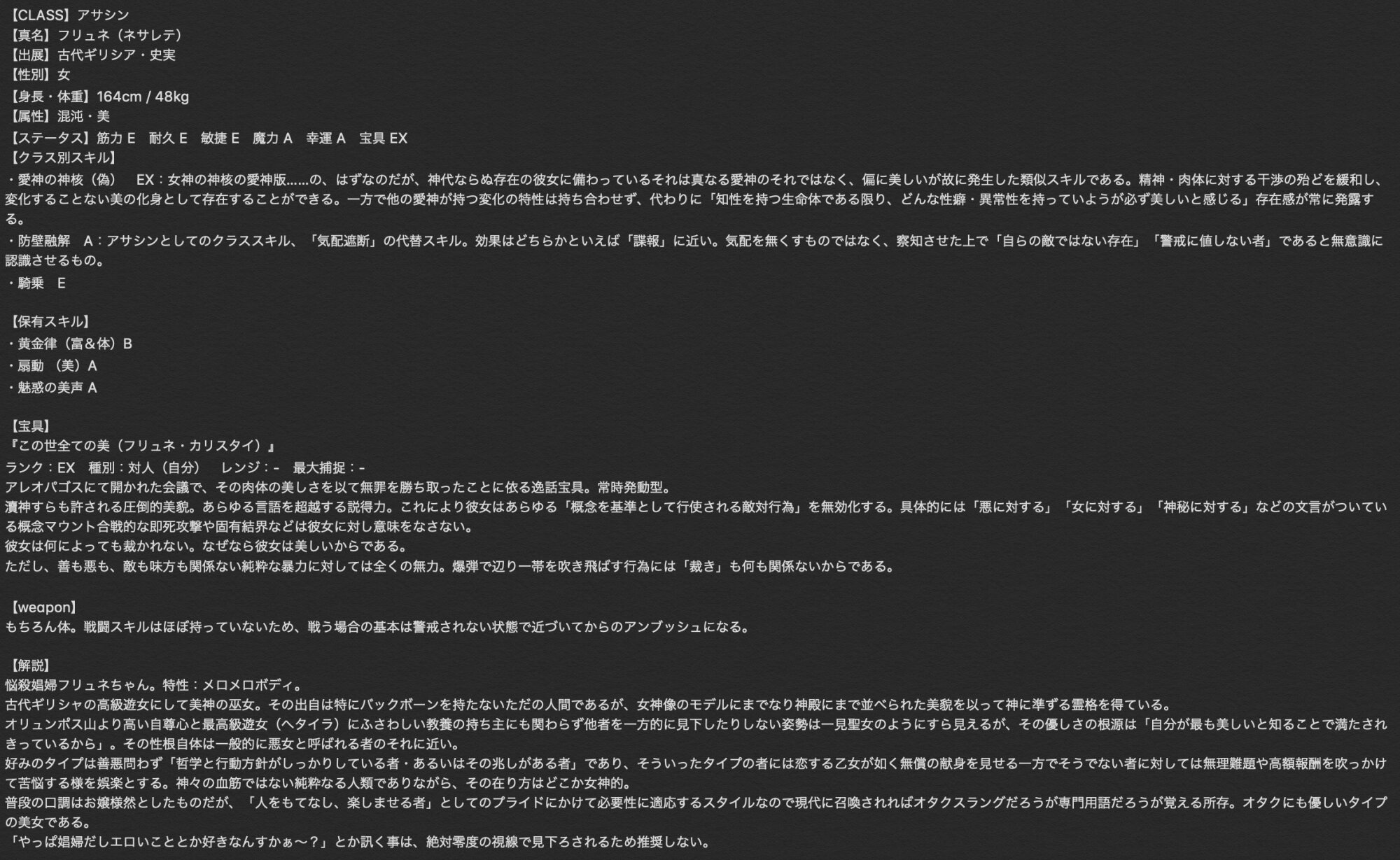 願い:友との再会。根元への到達も、バレリーナとしての大成も、彼女にとっては聖杯に賭けるべき望みではない。!!ふわー!!