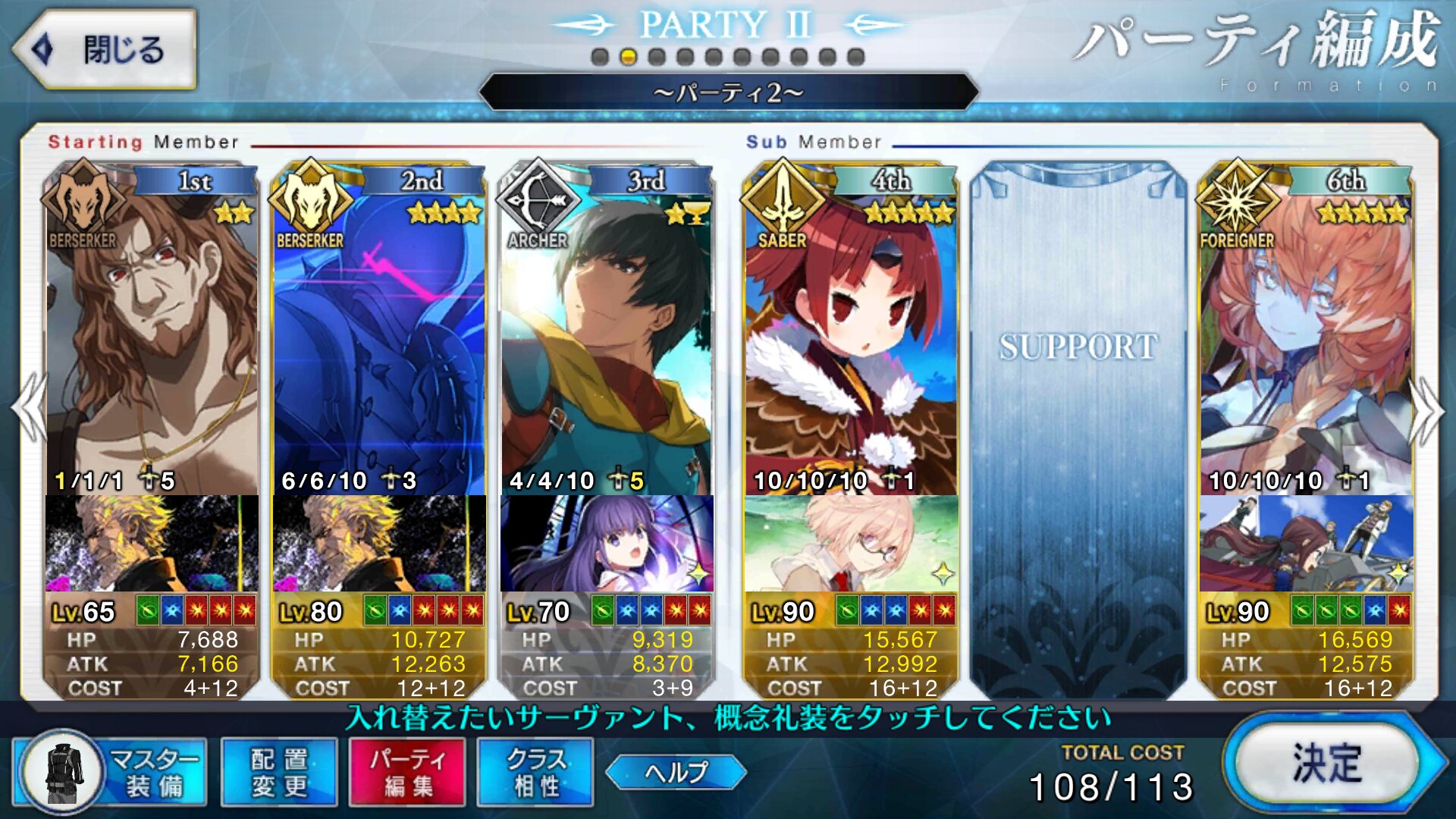うちで唯一スキルマしてる鬼一師匠を一緒に入れるかカレンに付けておけば雑に宝具出せるから……>>79