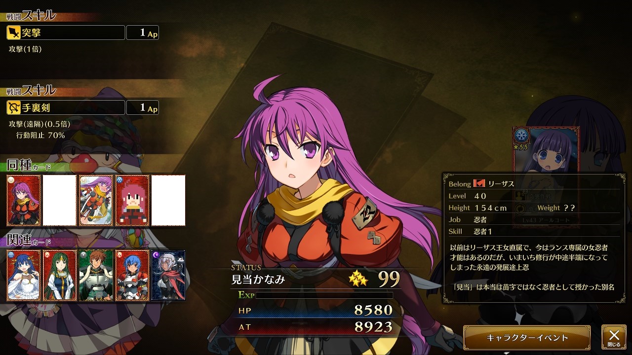 最初に使ったのは3章のナツメ。ツクシとの対戦で密かに家として構成しツクシを翻弄。