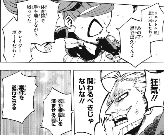 女性ヴィランと本格的に戦闘するのも初めてかな?トガちゃんとの遭遇はどれもちょっとパニックホラーだったし…>>899