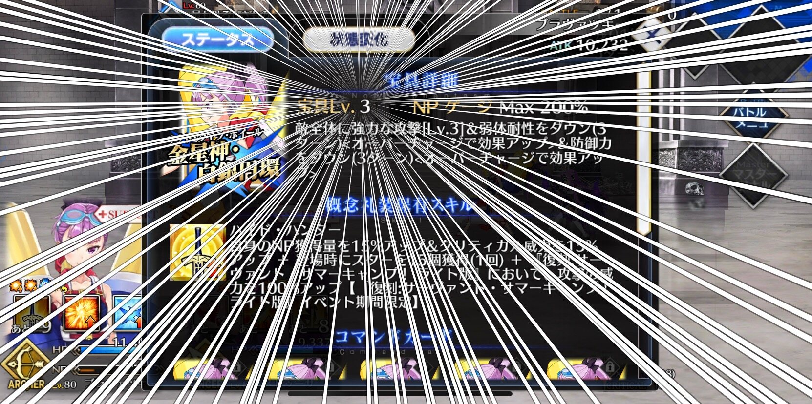 だからこそ、金時の宝具強化にバスター耐性ダウンいれたのは正解。アレなら次のターンに殴っても恩恵あるからね建ててきたけど初めて建てたからなんか間違ってたらごめんなさい
