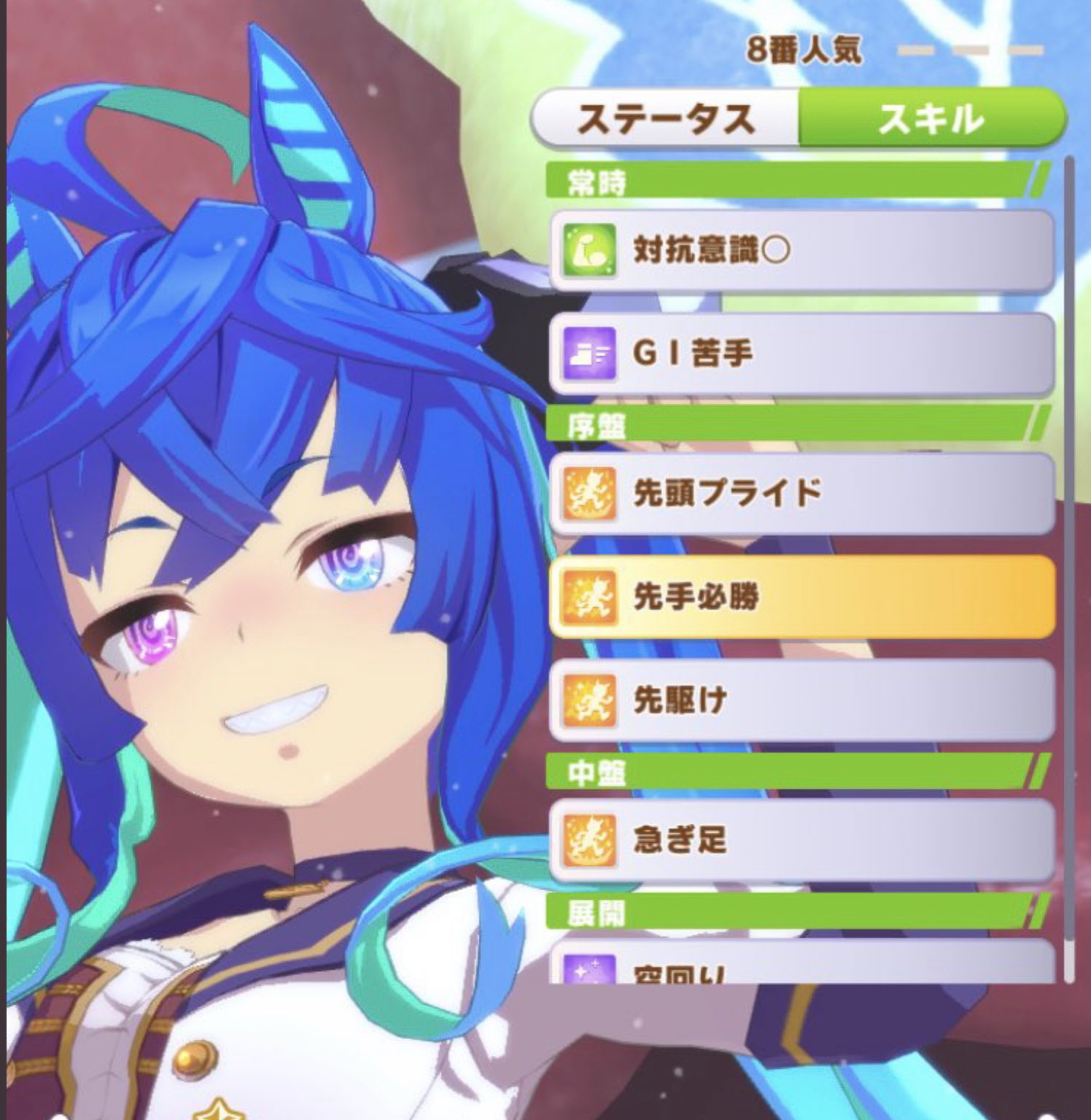 日常的な世界では恋人が想像しにくい。バトル漫画の世界線なら多分トレーナーかジャスタウェイのトレーナーと結ばれてる()呪術廻戦で一番好きな術式は無為転変です