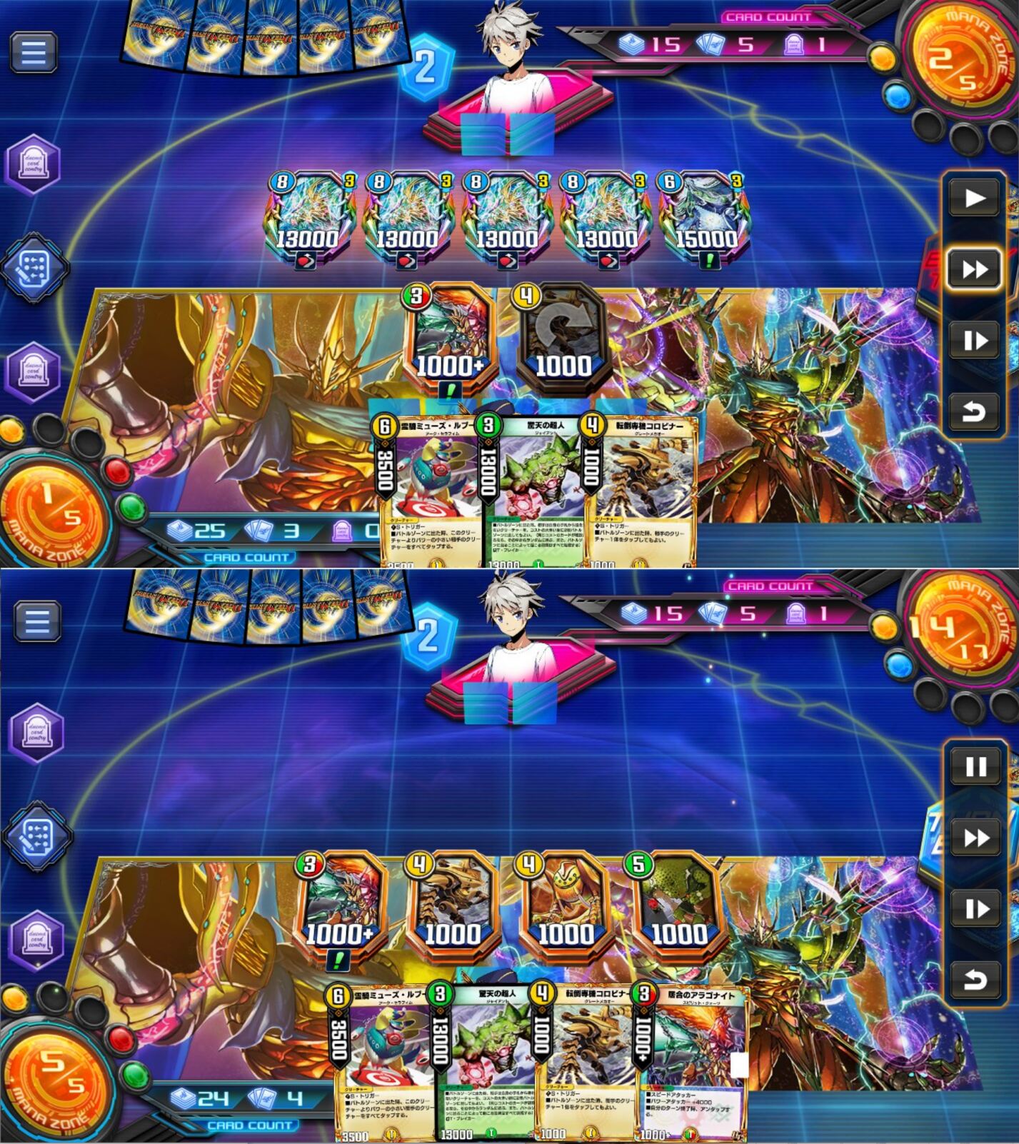 驚天が呼んだのが軽量クリーチャーだった場合、次のターンでだいたい進化してくるからそれ意識