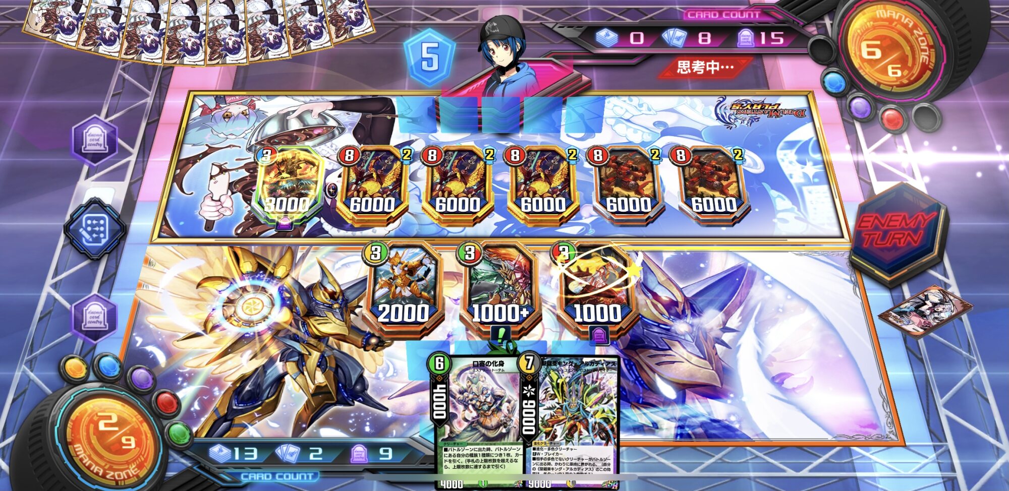 敵さん6マナしか溜めてないところを見るに、中盤でマッドネスをマナに送らず手札にためまくったんだなって
