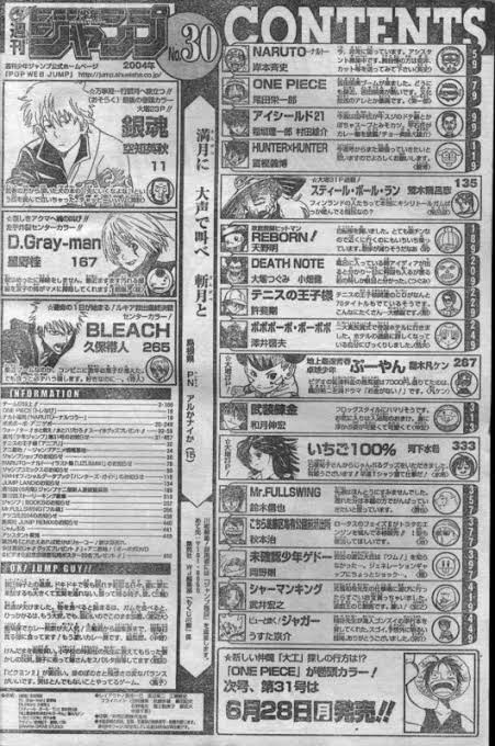 98年にハンター、99年にナルトとテニスの王子様。ちなみに、97年にワンピース