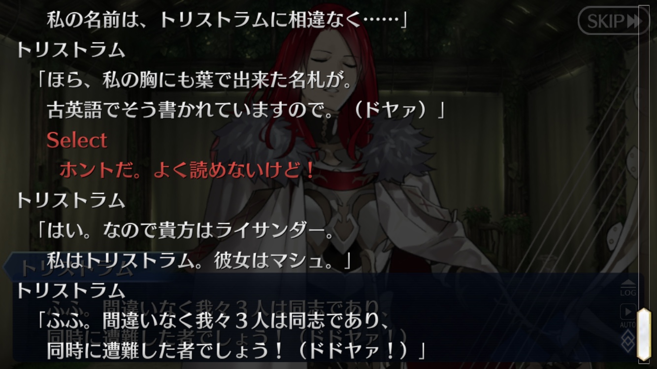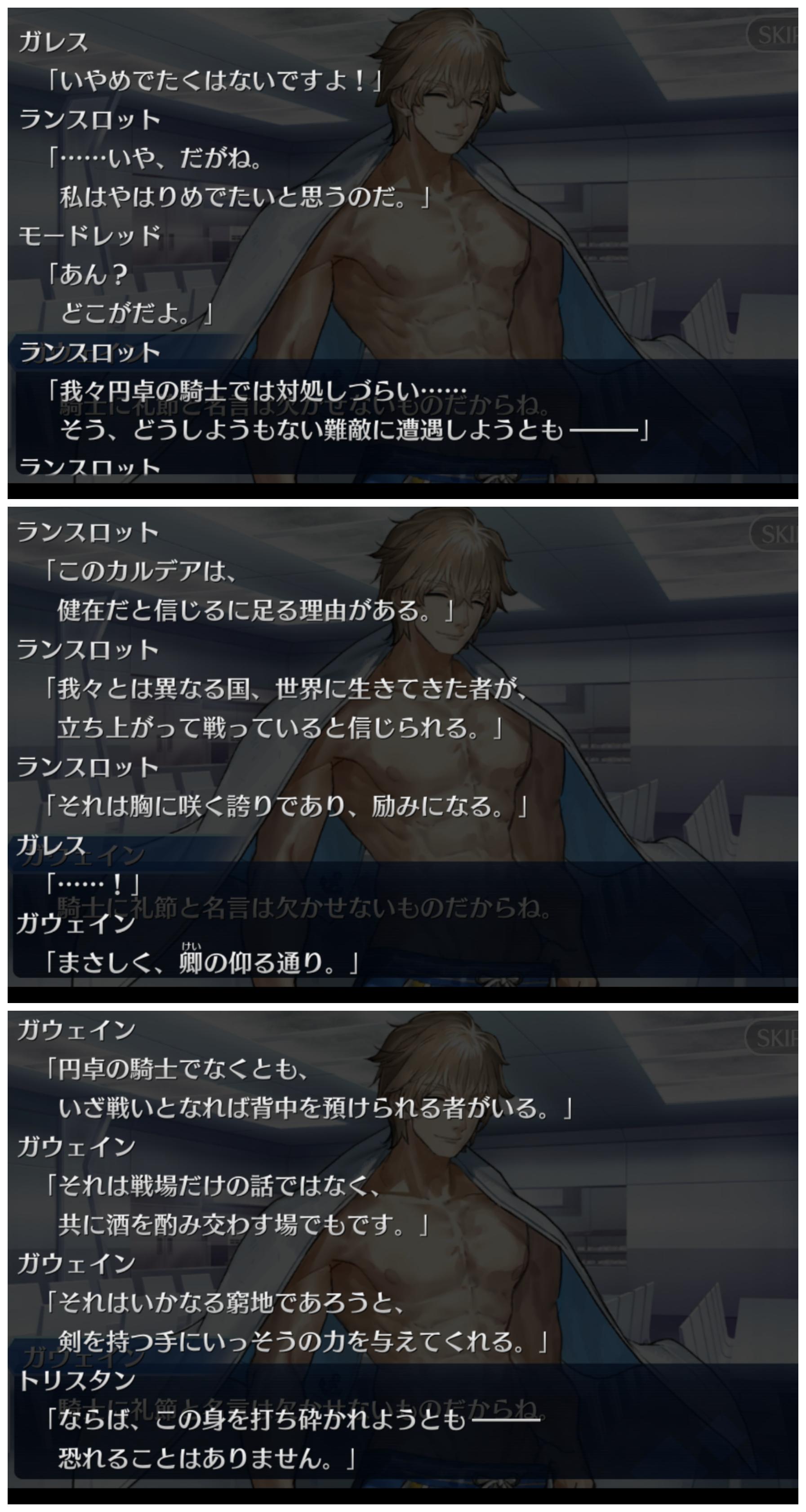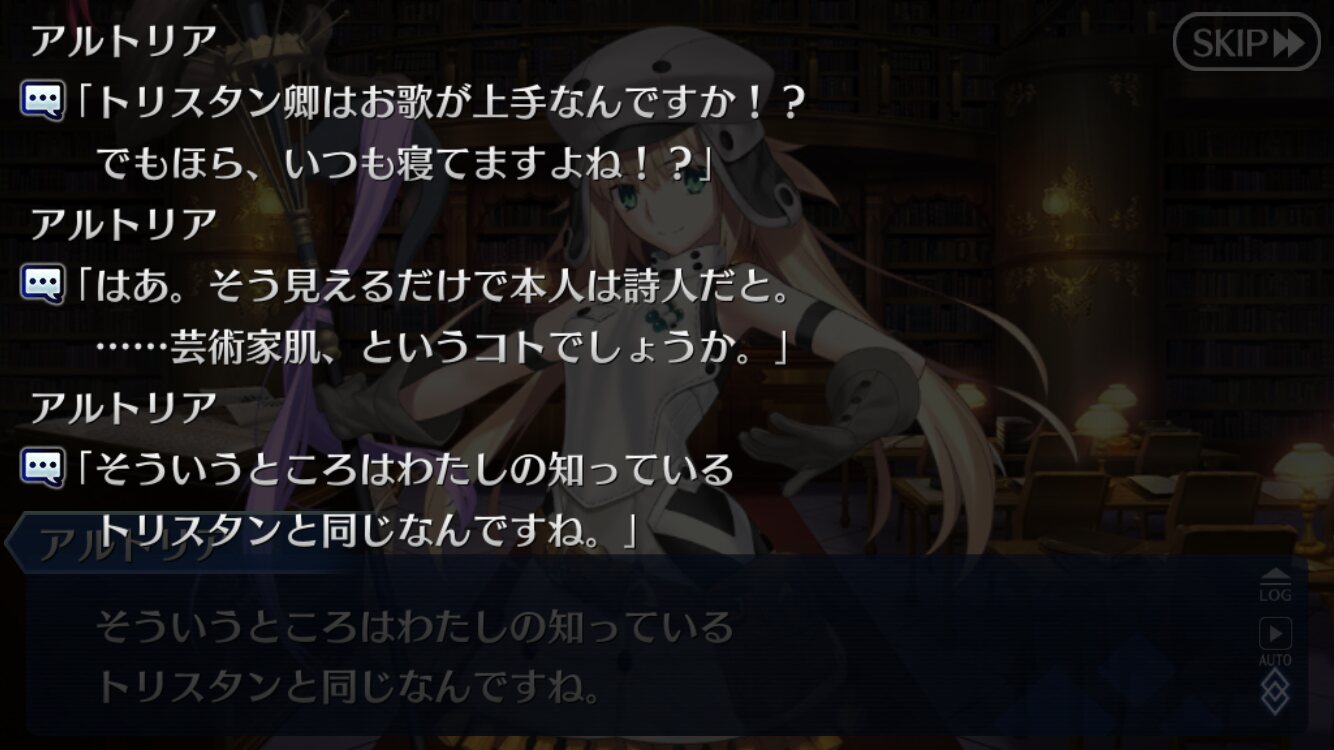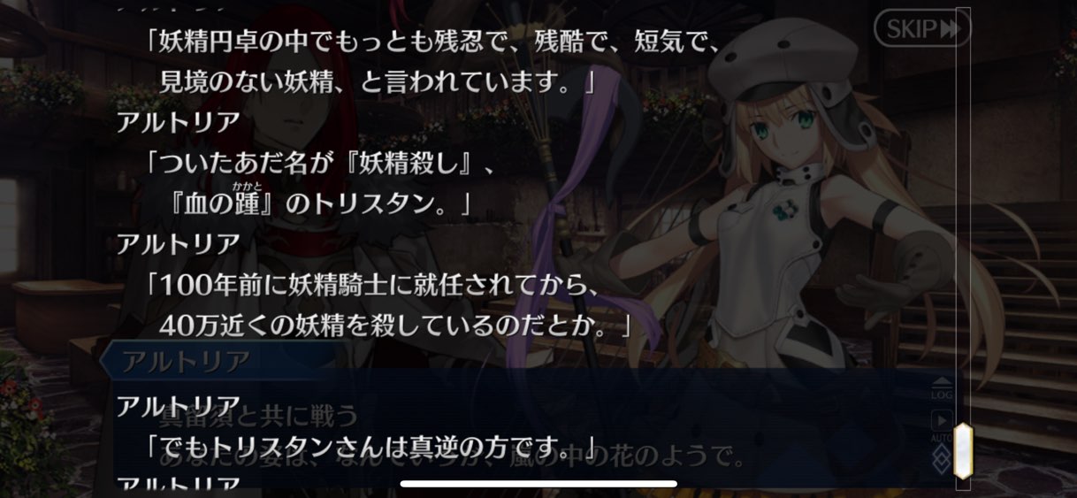 あやうく冒頭で言いかけてあまりにも頓珍漢なワードだからか言い直されるレベルの肩書第2節まで来たけどトリスタンが第6特異点の話聞いてきたせいで「こいつ自分の命も尊厳も償いに消費する気なんだ!!」と若干心がざわつき出してる
