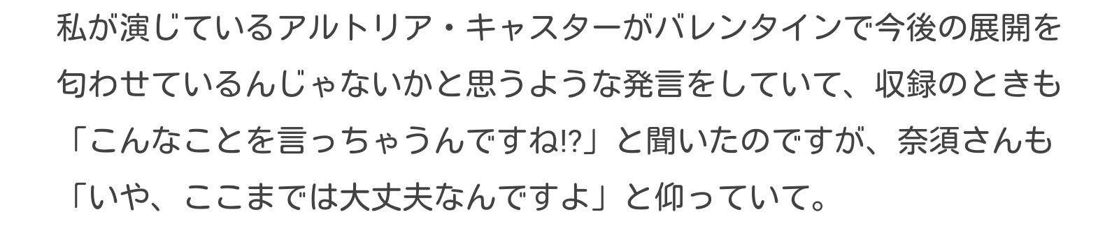 もう3年以上前だけどAJで2部のキービジュアル発表された時に鞘セイバーについて川澄さんちょっと何か知ってる感じだったってメタ的な部分も含めて>>35