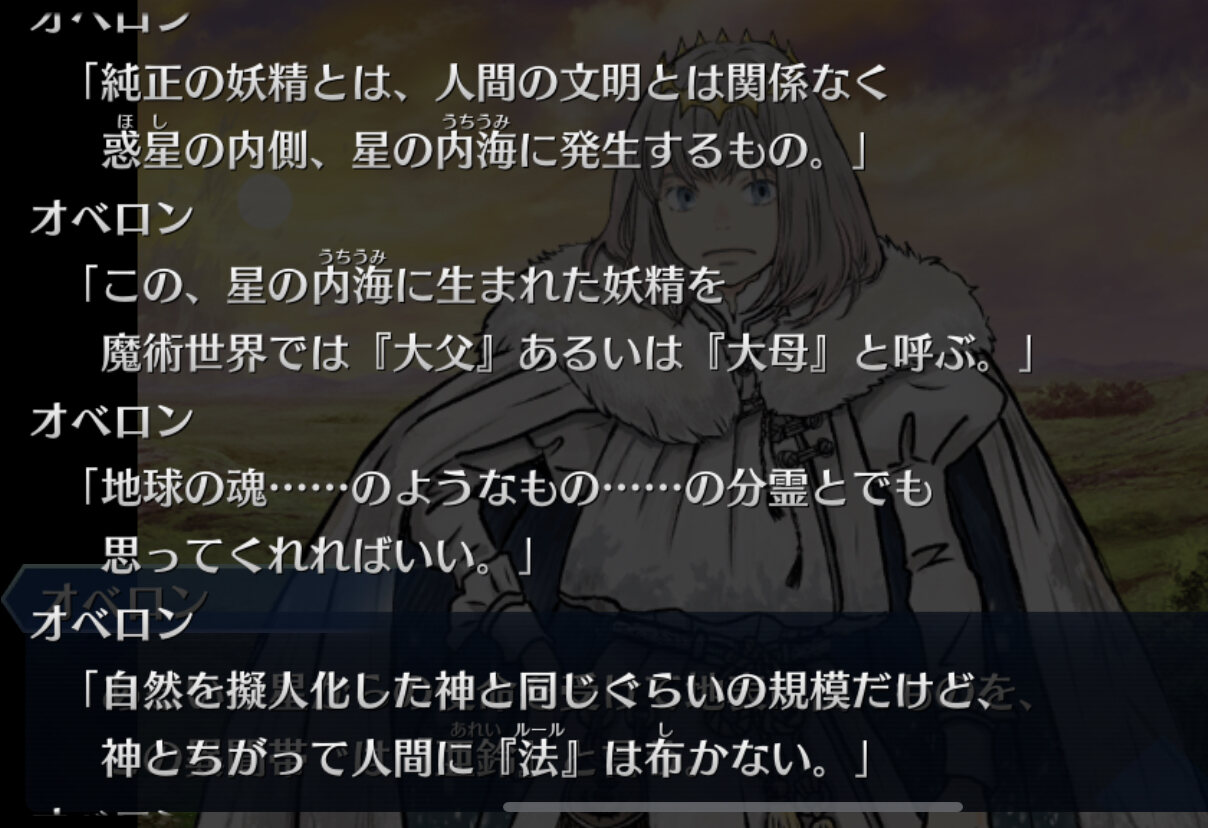 彼女の目的考えるとアーサー王という存在以上に大きな敵がいるオベロンが全く戦う兆候ないけど隠し玉があるのか、単に出し渋ってるのか