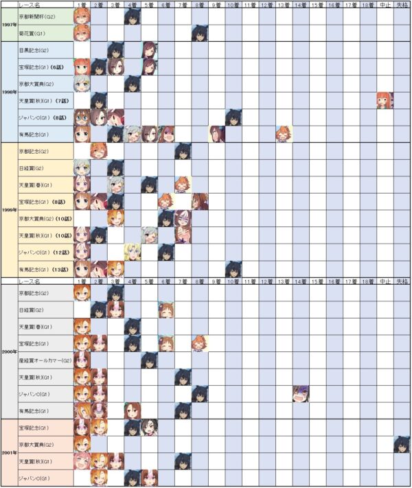 オペラオーは年間無敗もヤバいけど、26戦して一度も掲示板から外れてない(全て5着以内)のもヤバい