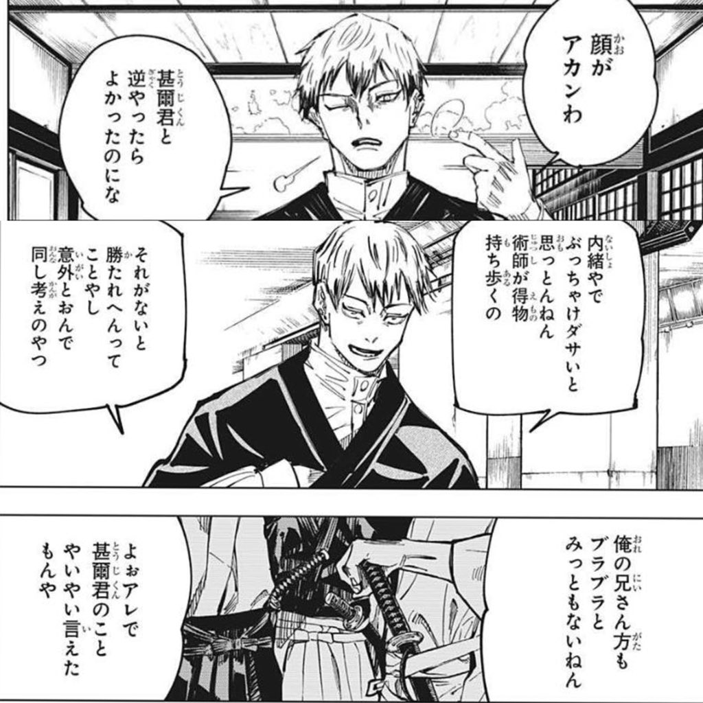 「どうすんの?(甚爾君と同じ景色見れる悟君に師事してる)乙骨君と(おれがめっちゃ憧れてる甚爾君の息子である)恵君の金魚のフン(とかふざけんなやお前如きが身の程を弁えろや)?」