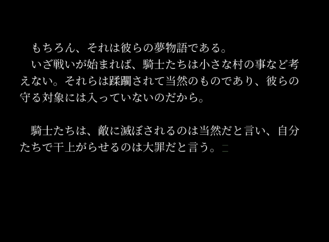 > ……その後の出来事を語るのは、いささか疲れる。