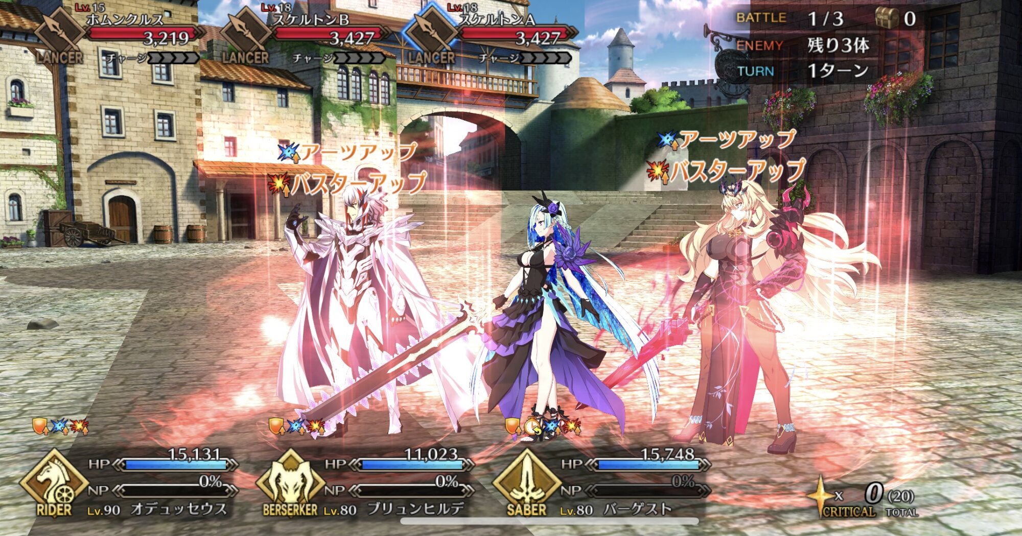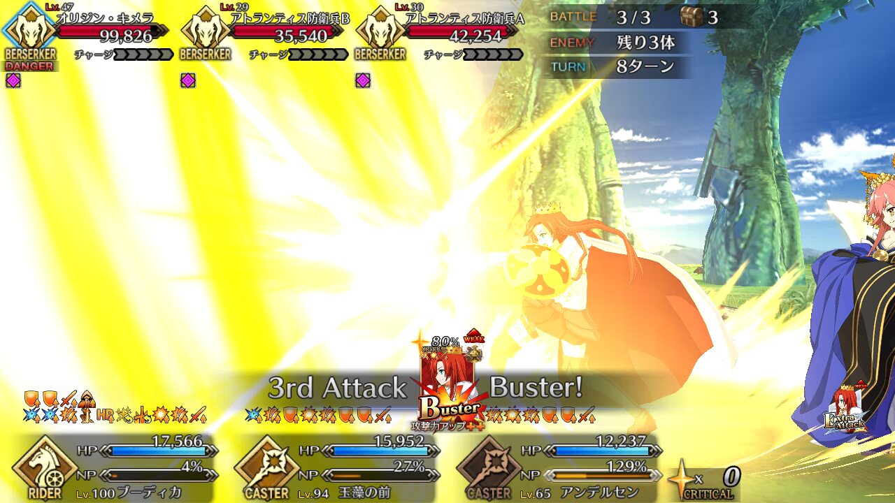 これで1ターン目にこの鯖で第一陣殲滅してサポーターとオダチェンすれば残りのカレスコ装備や自己チャージで宝具打つ