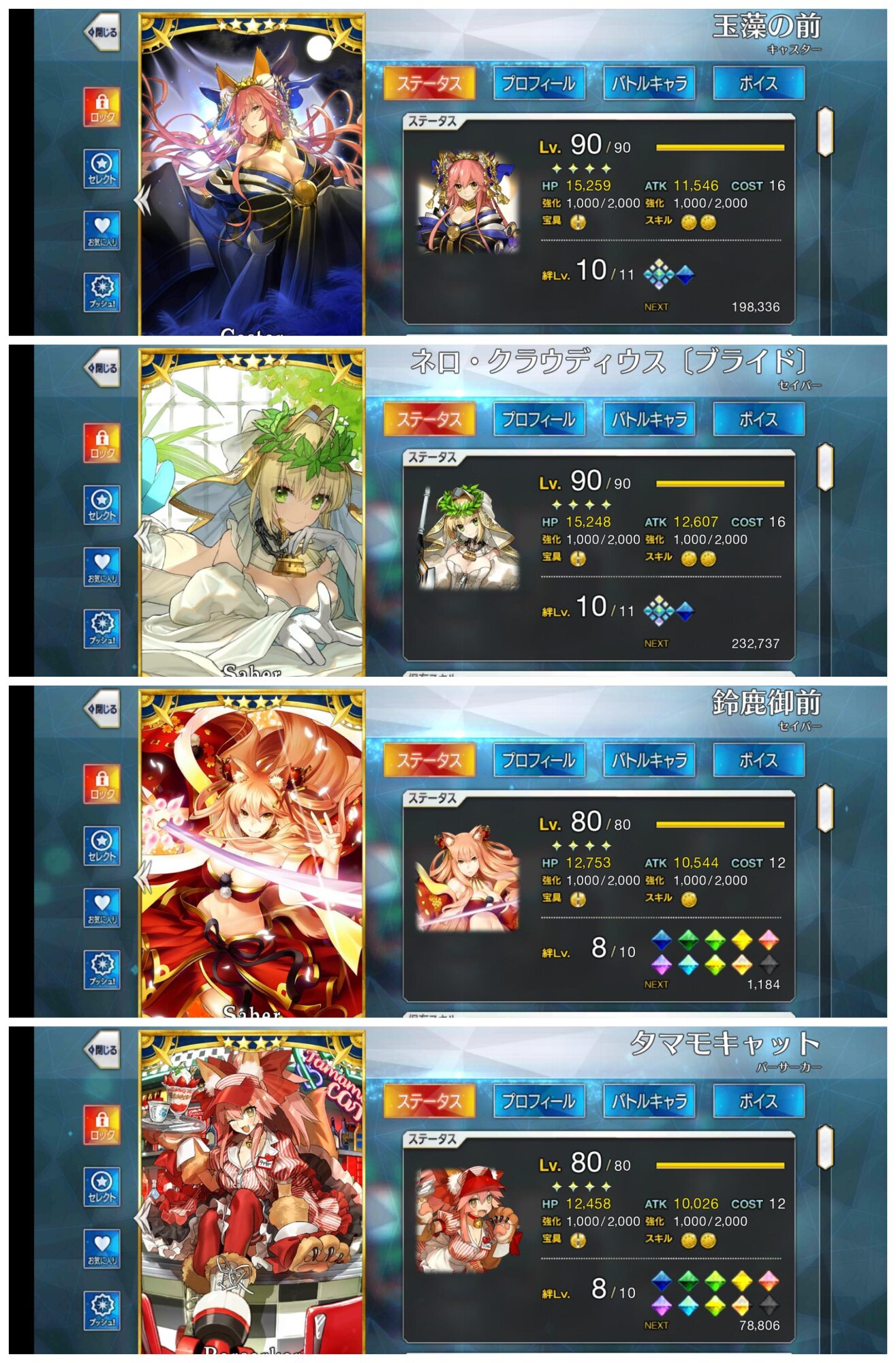それぞれ凸したやつ一枚ずつ取っておかなかったのを少しだけ後悔してる。霊基一覧から見れるには見れるけど少し。ストーリー終わらせてきた