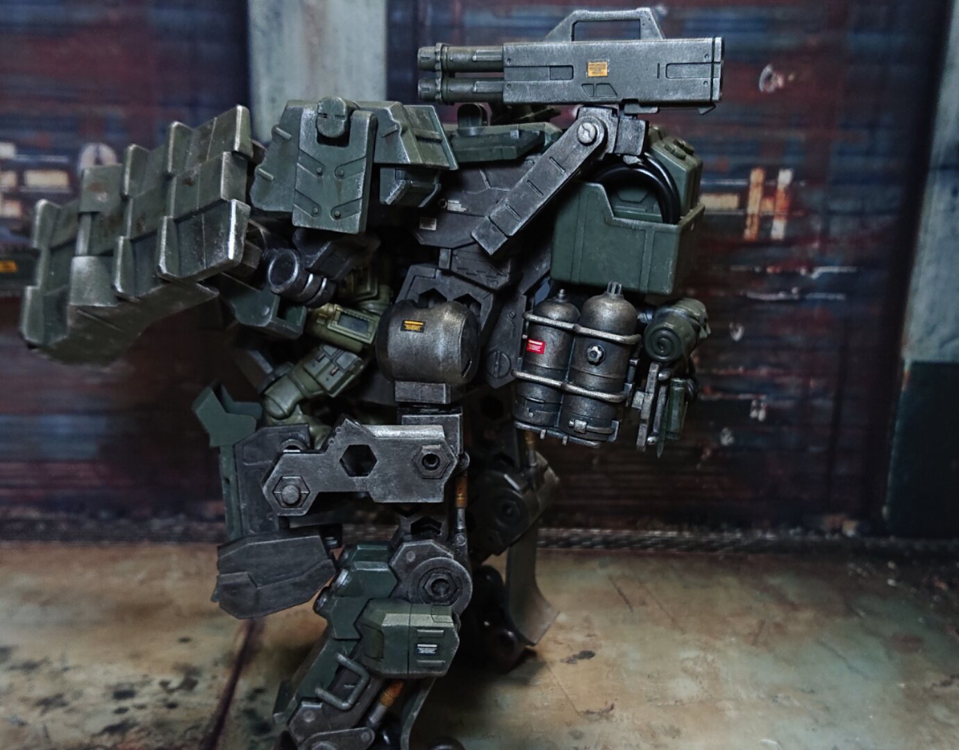ウェザリングは主に風雨による風化の表現だね。この他にもチッピングやウォッシング、フィルタリングにドライブラシやスタンピングといった処理が存在する。ガンマカと百均の道具でも出来るからやってみると楽しいよ。ちなみにガチ勢になると、錆びた鉄とプラモを混ぜて雨に晒して本物の赤錆を移す人までいる。>>35