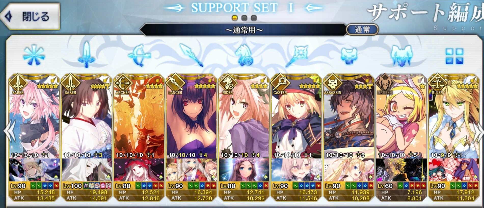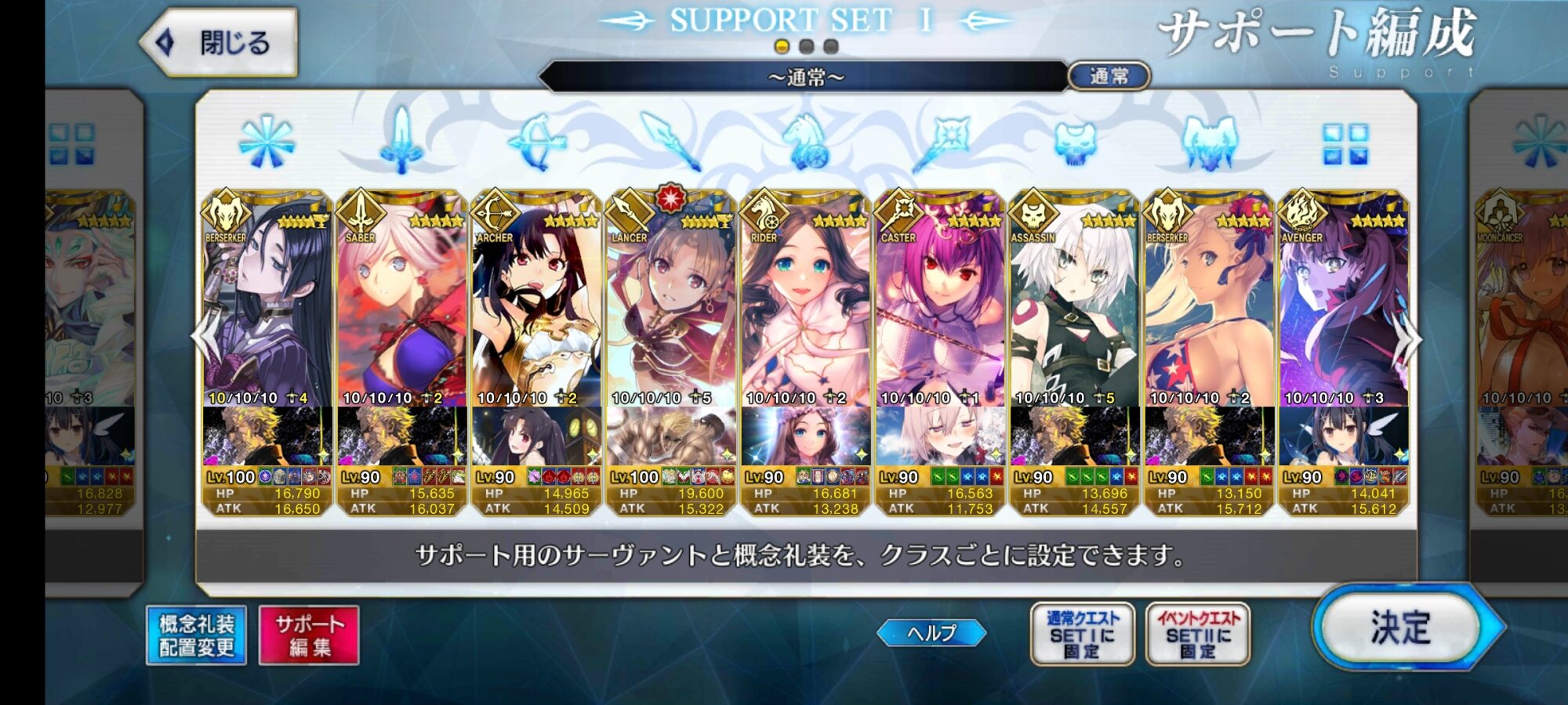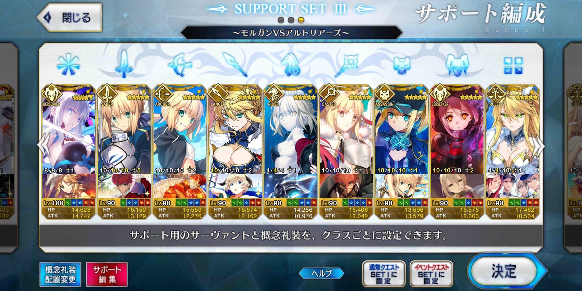 総括すると凸ティー持ちサポ術か絆礼装、イベント限定ものを置いとくのがいい感じですかね?礼装とかどれがいいのかわからないのでとりあえず絆礼装にしといたんですが正解だったみたいで良かったです
