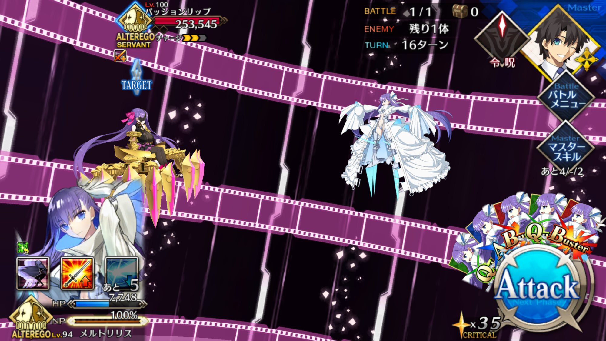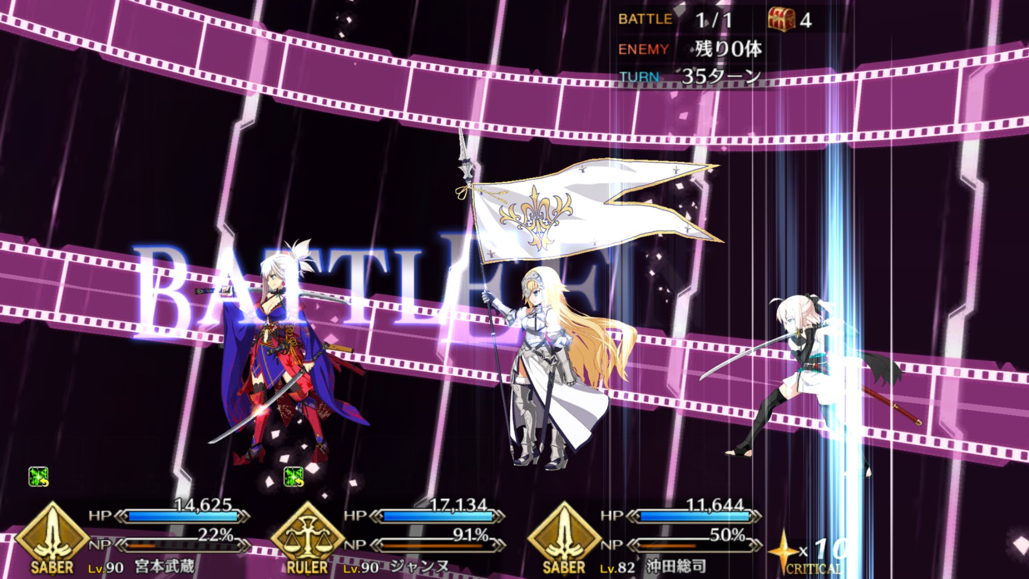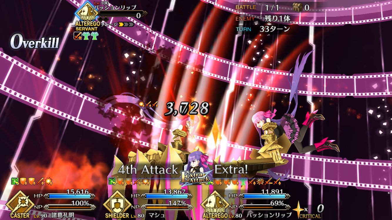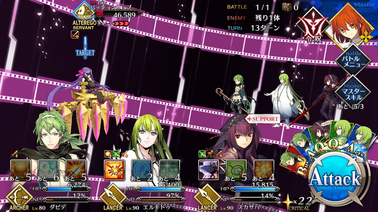 今にして思うとKPがゼパルのインストール数値に見えてきて怖いリップ戦はマシュ、ジャンヌ、ジャンヌオルタでクリアできた。相手の宝具のヒット数多いからジャンヌすごく活躍したわ