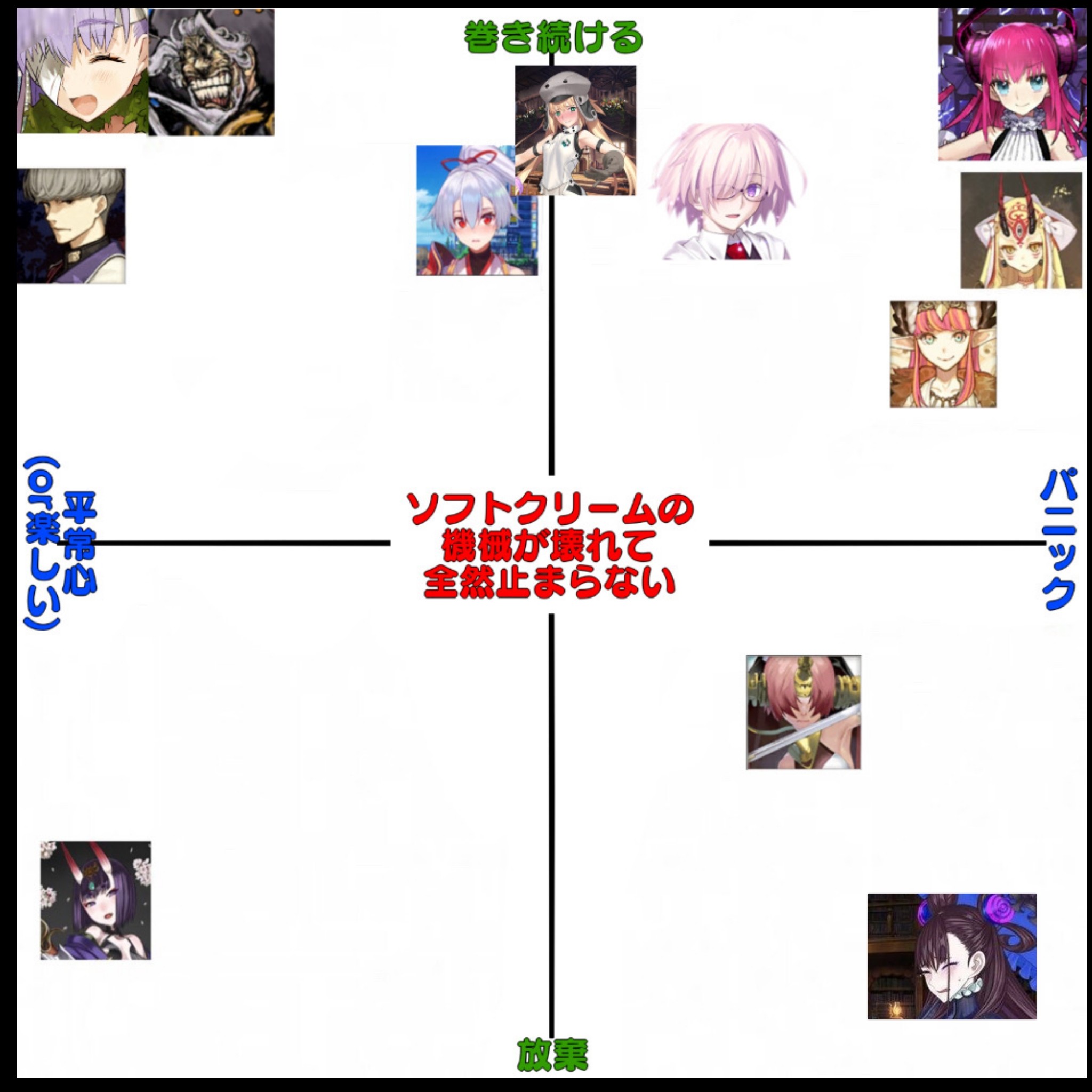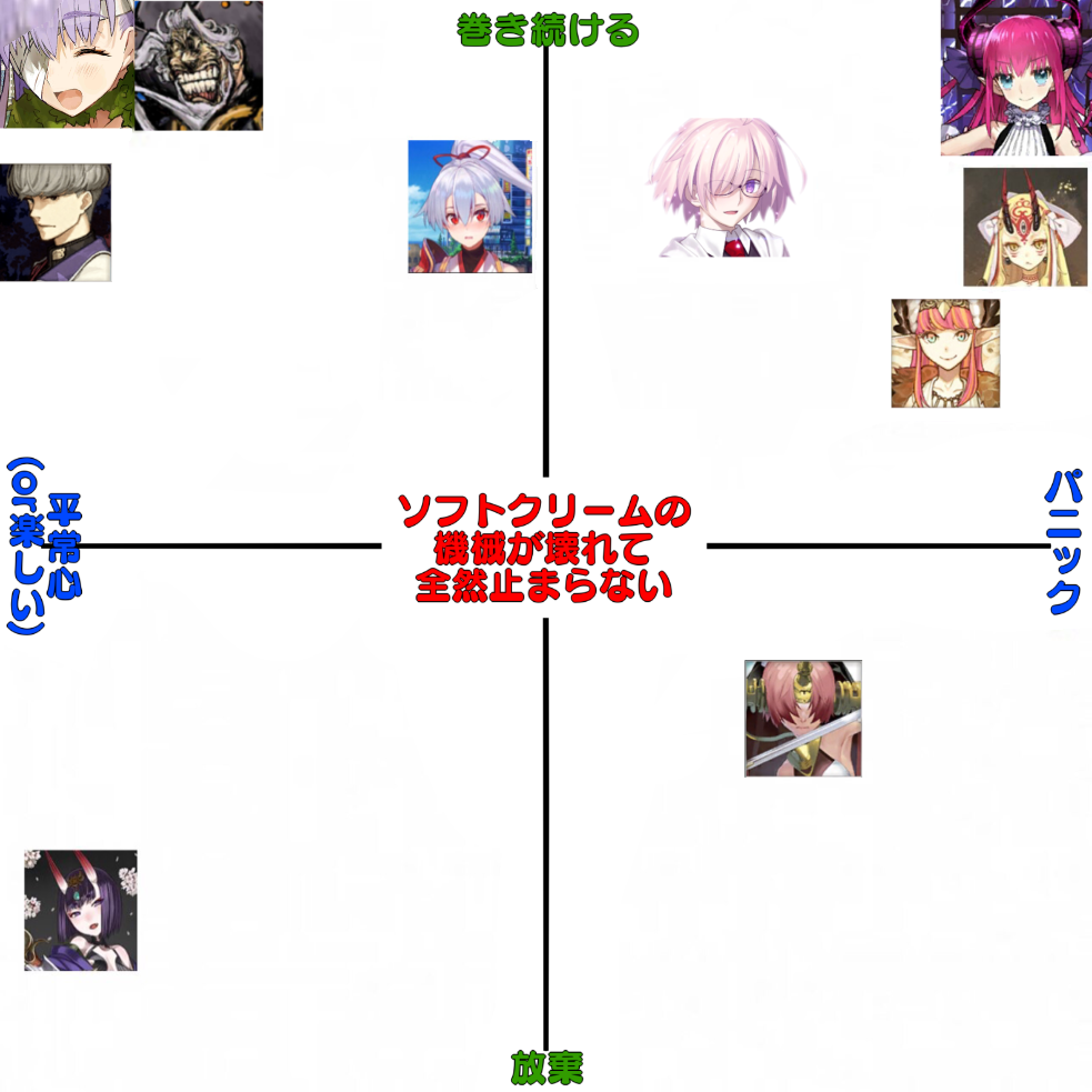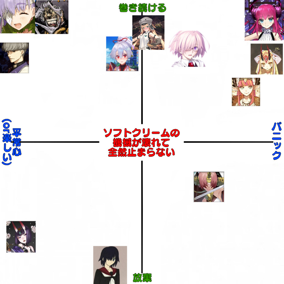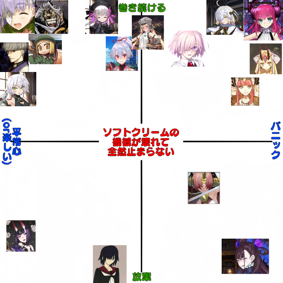 雑談から相談、報告や攻略、盛り上がりたい話題などお気軽に。リーク・解析情報等は禁止です。荒らし・誹謗中傷等は無視し、報告・NGにて対応してください。二次創作画像は転載可能な物に限り、その際必ず引用元を併記してください。R18関連話題、よくてよ無しのガチャ結果、実装から二週間以内のシナリオ及び開催期間中のイベント内容、最終再臨や霊衣解放の画像や話題は専用スレにてお願いします。
