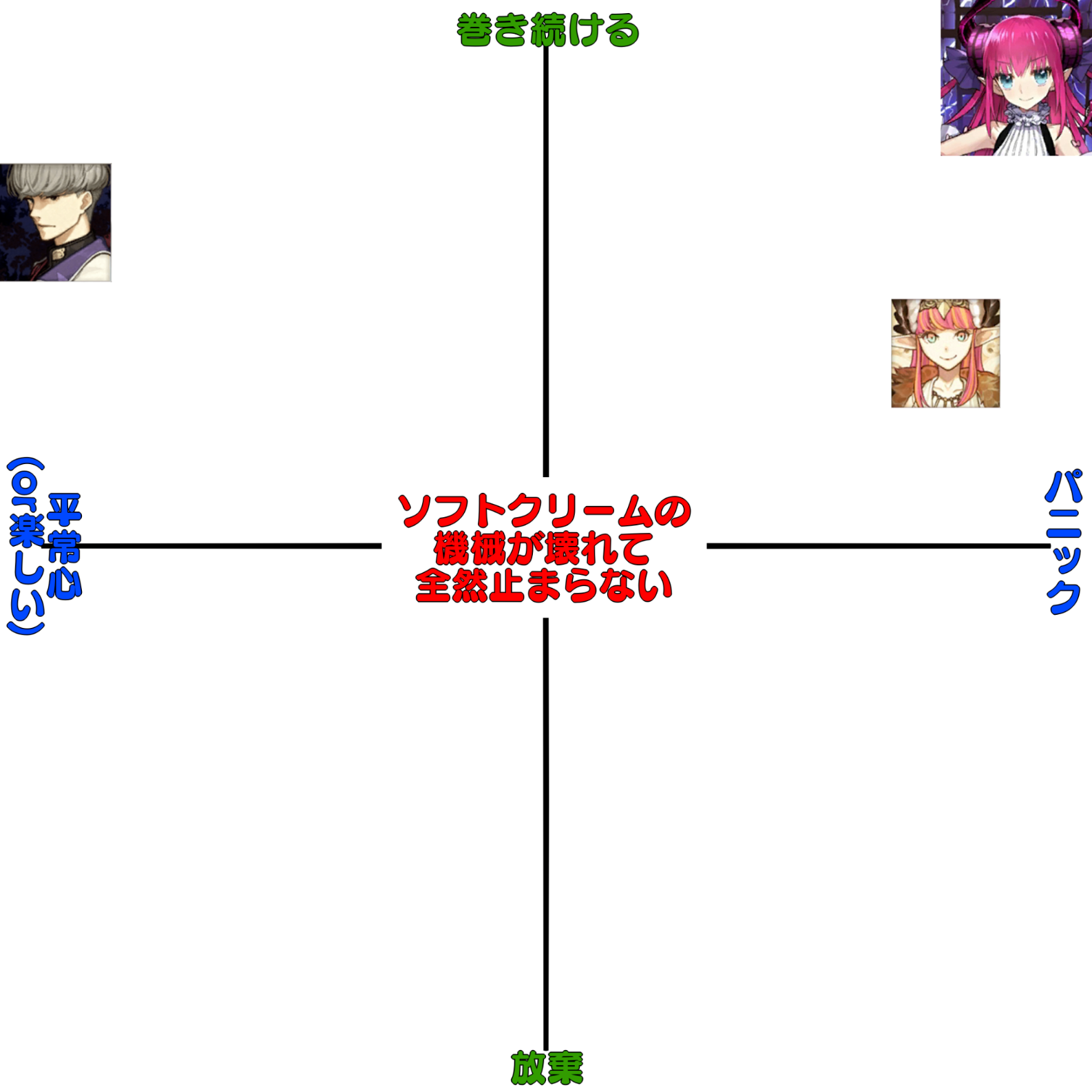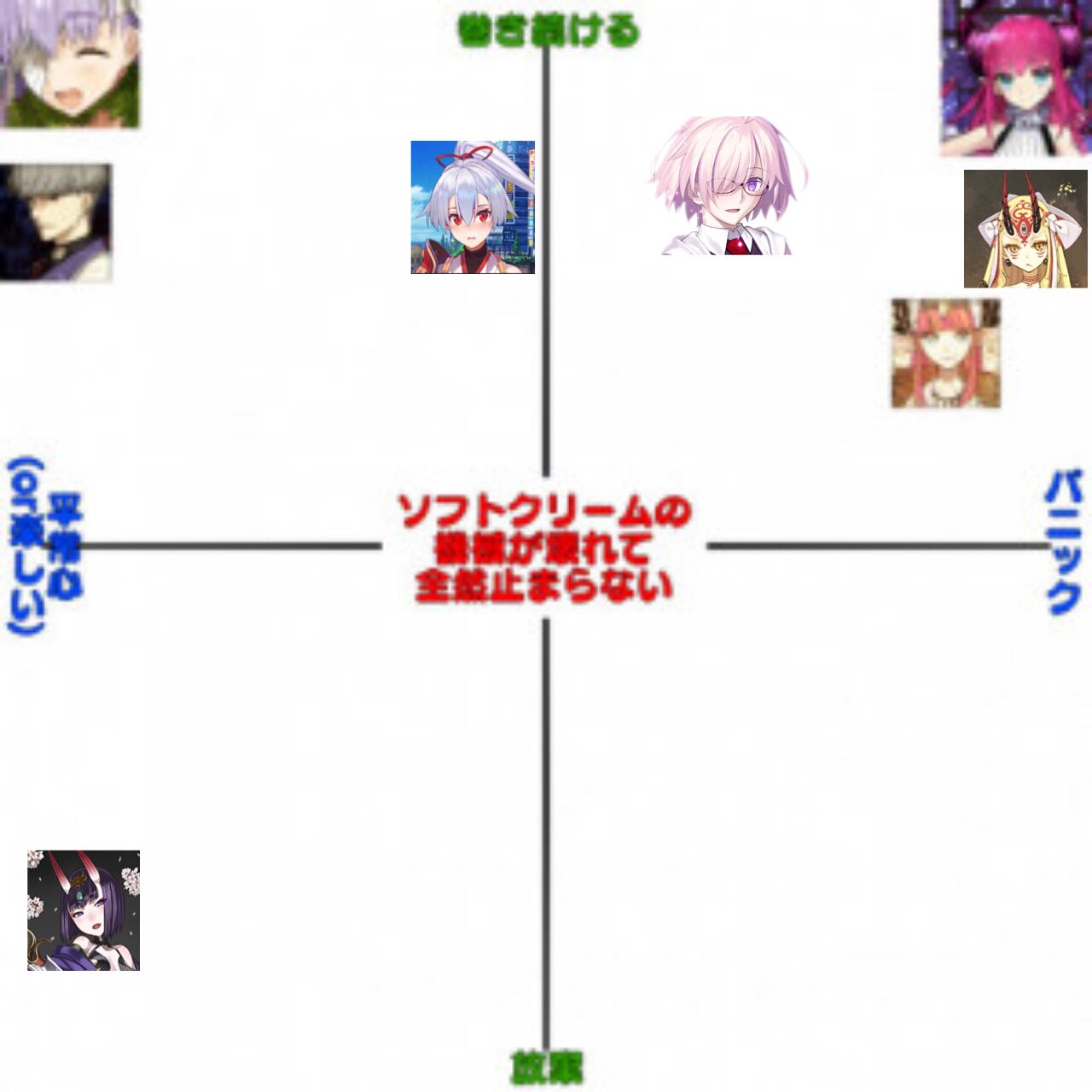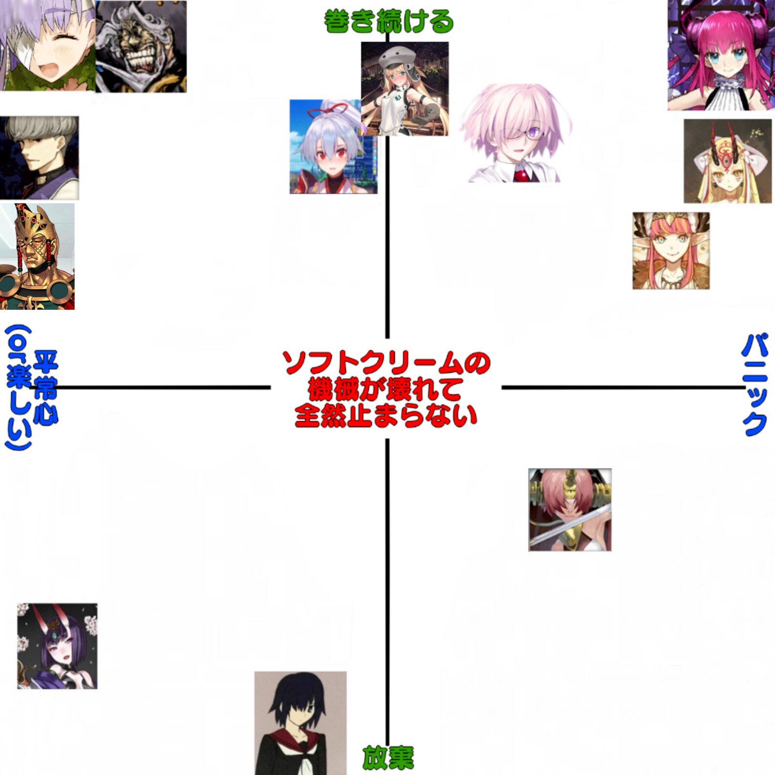 雑談から相談、報告や攻略、盛り上がりたい話題などお気軽に。リーク・解析情報等は禁止です。荒らし・誹謗中傷等は無視し、報告・NGにて対応してください。二次創作画像は転載可能な物に限り、その際必ず引用元を併記してください。R18関連話題、よくてよ無しのガチャ結果、実装から二週間以内のシナリオ及び開催期間中のイベント内容、最終再臨や霊衣解放の画像や話題は専用スレにてお願いします。