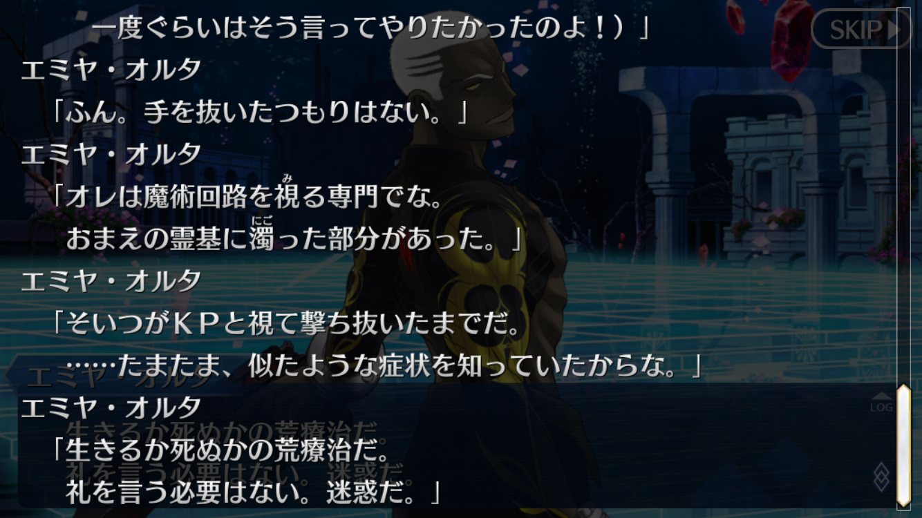 何故レベルアップや再臨、戦闘の度に記憶が削れるか→エミヤ腕の影響。マスタードもそれ