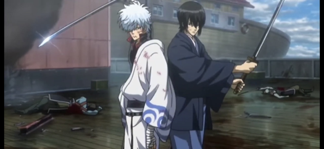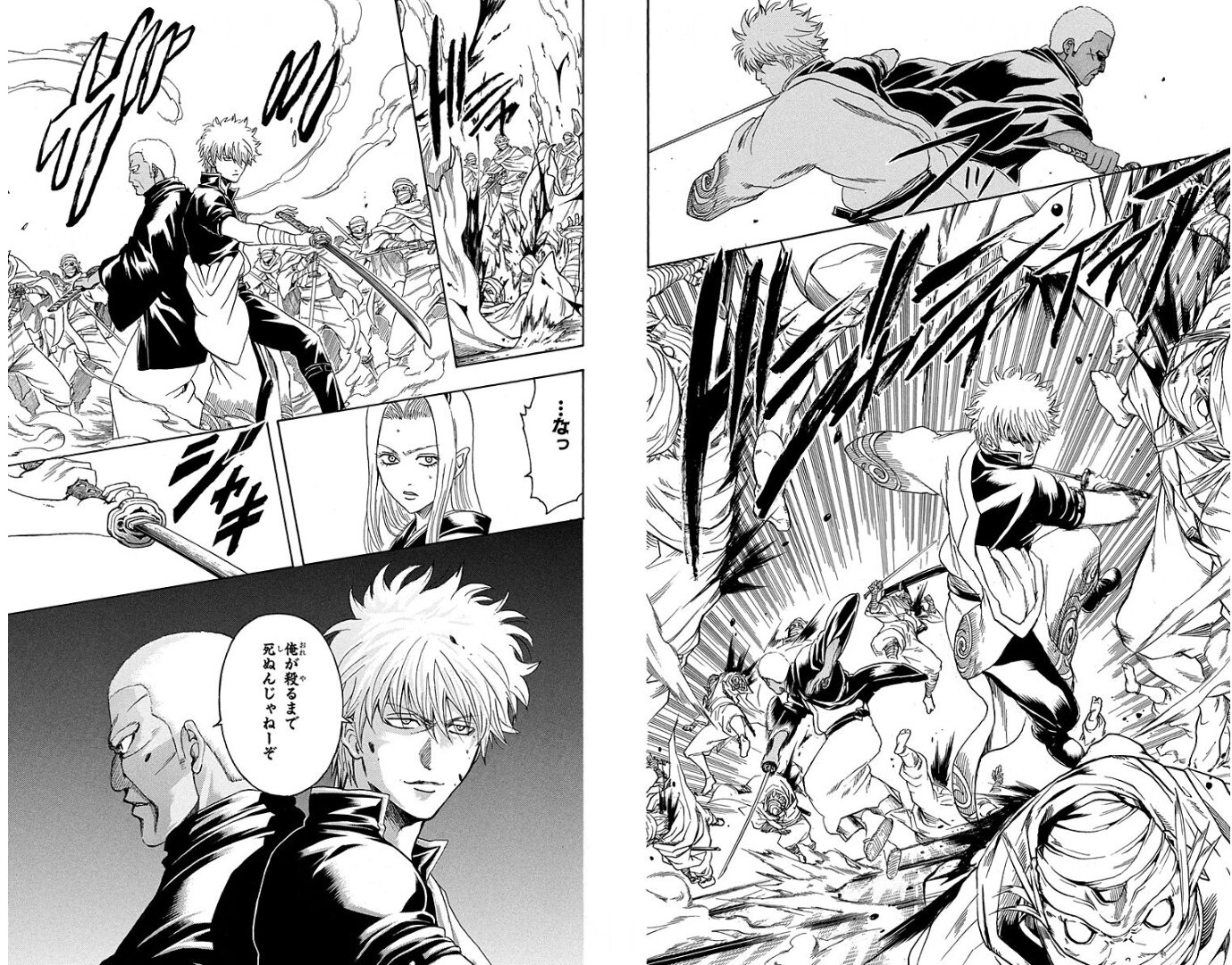 ここはわかりやすく2人の戦い方の違いを描いてたな、敵の武器を奪いながら仕留める銀さん一方で剣一本で戦い敵を倒すヅラ>>96