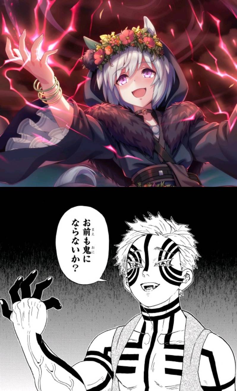 自分も最初はセイレーンとかかと思ったけどカード名が[むくなるさそい]で特技名が「こずえのよびごえ」、衣装もよく見た感じクトゥルフかなって