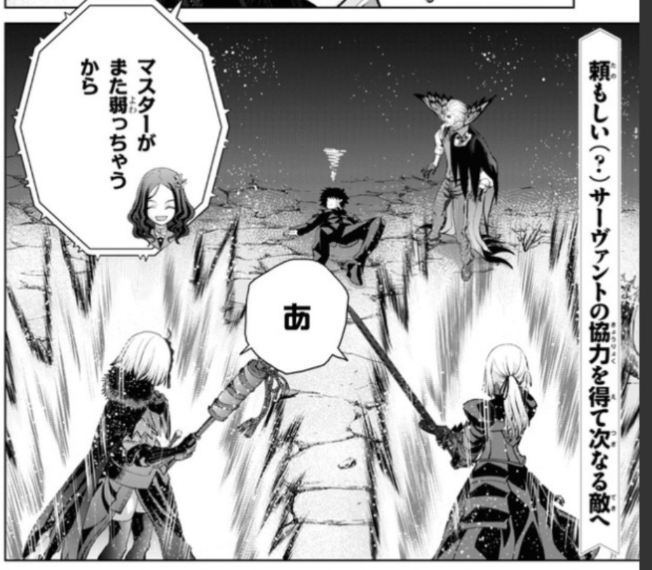 思えば話は聞かない暴走ぶりは似ているな…「私はあの人が愛したこの町を守りたい」と奮起するマシュ&「予言とか使命とか関係ない、もう絶対離してやるもんか」と駆け寄る藤丸&またしても踏み出すことができなかったキャストリア