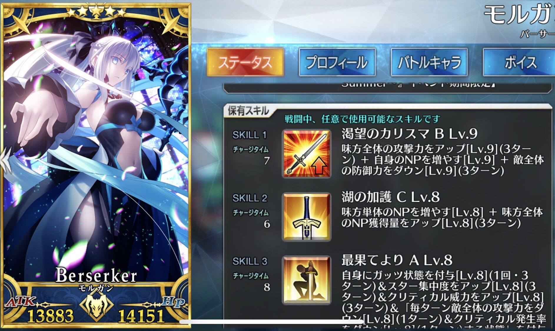 ビリーのボイスってやばない?特に、「よし、がんばるよ」、「のろいな」、「よし!勝った!みててくれたかい?」とか言われると周回中なのにミスクレーンばりにペンライト振っちゃうんですわー!
